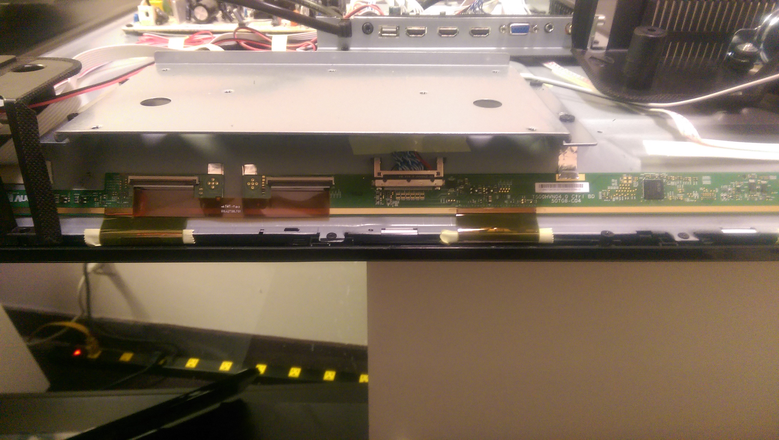 - TV came with vertical bars and no image. Found faulty TVS on left buffer board. Also replaced T-Con (may have damaged the original while hot air removing components, board has slight warp) and have full image but few horizontal lines on the screen. Some of the lines appears to be 2 pixel tall while others are 1 pixel tall.