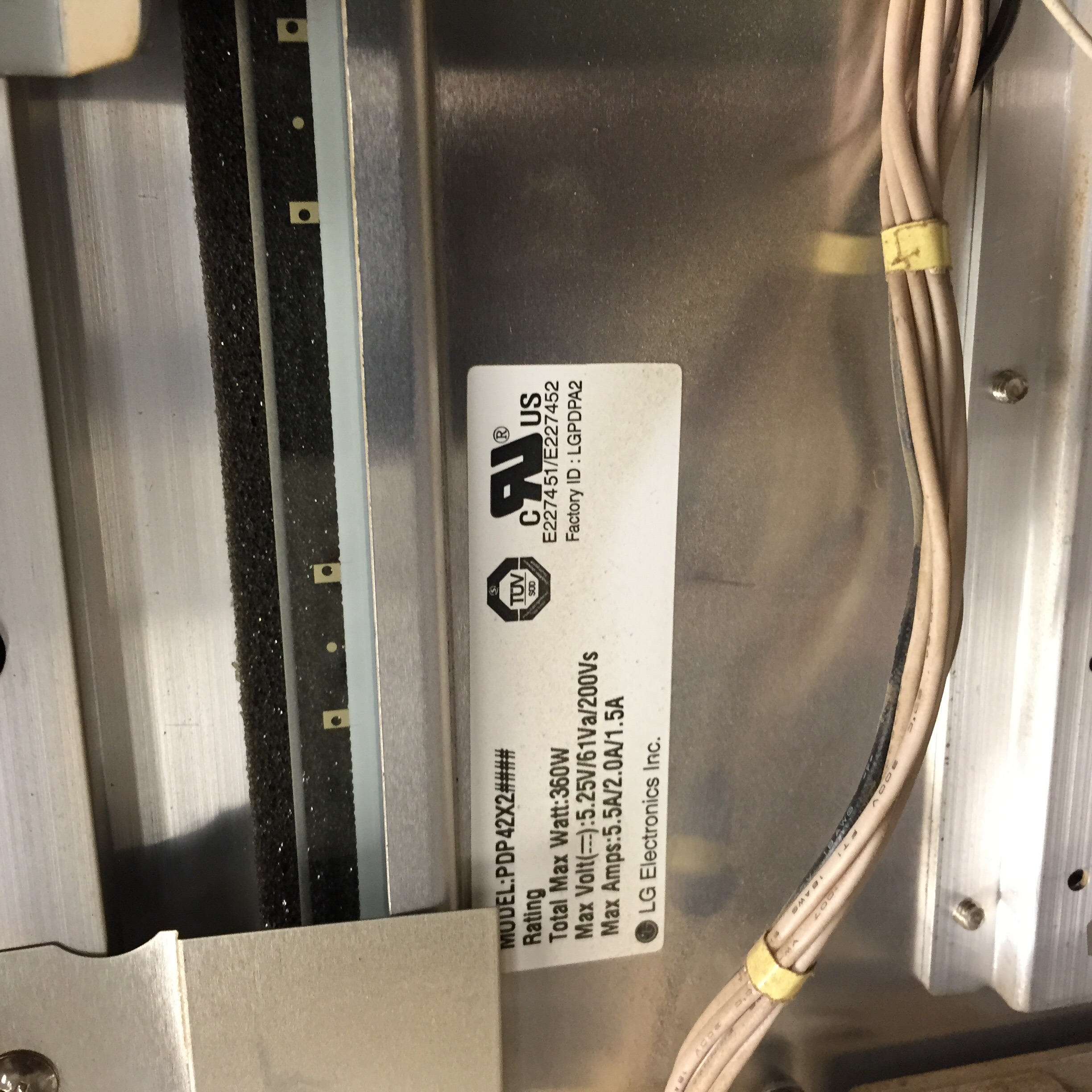 These pics confirm you have a 42" X2 panel, which is well known to suffer from maldischarge issues over time.Please do not PM me with questions! Questions via PM will not be answered. Post on the forums instead!