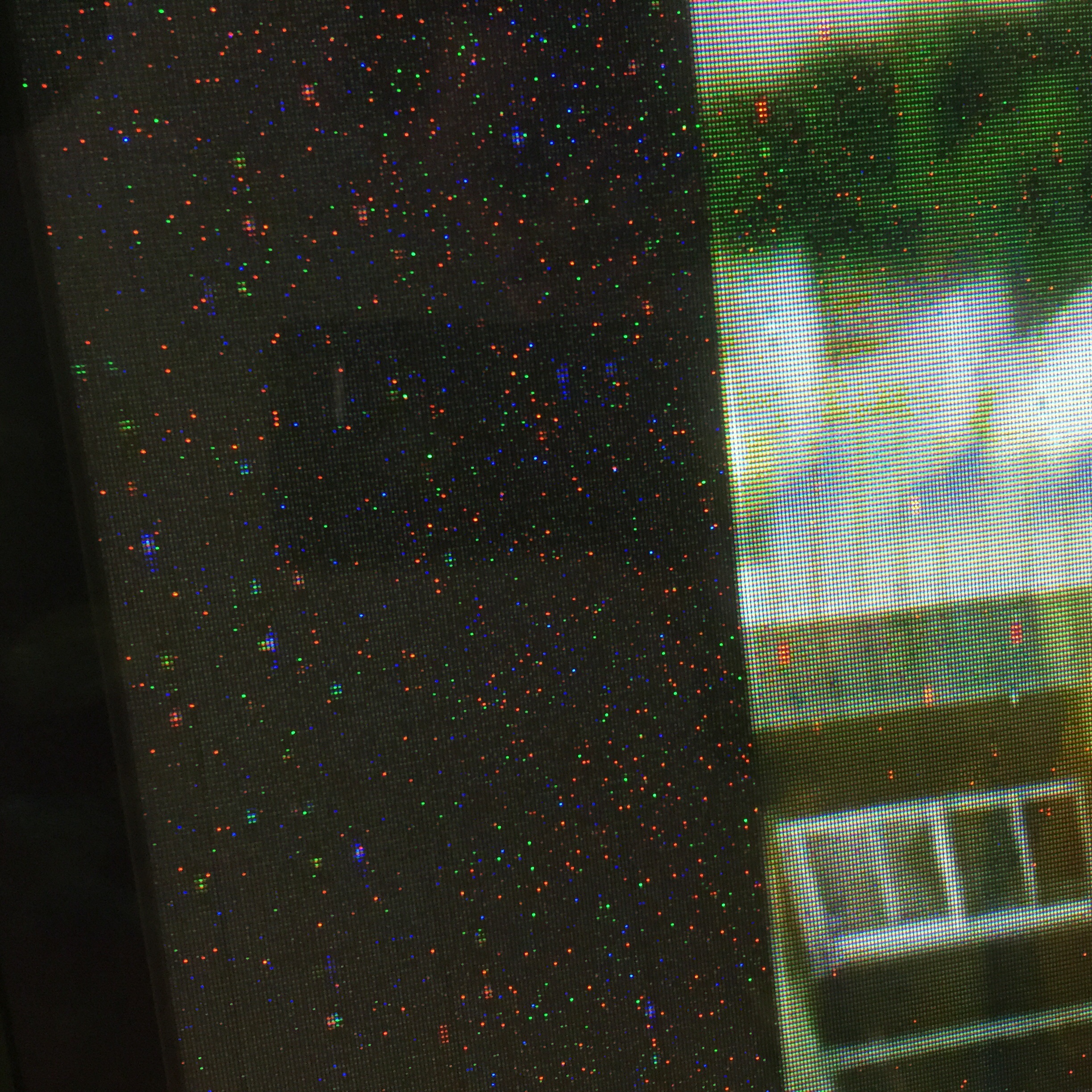 I have a maxent tv belongs to a friend it has a lot of colors spots difrent colors green red if any one has any ideas what might be causing it.here is a pic.