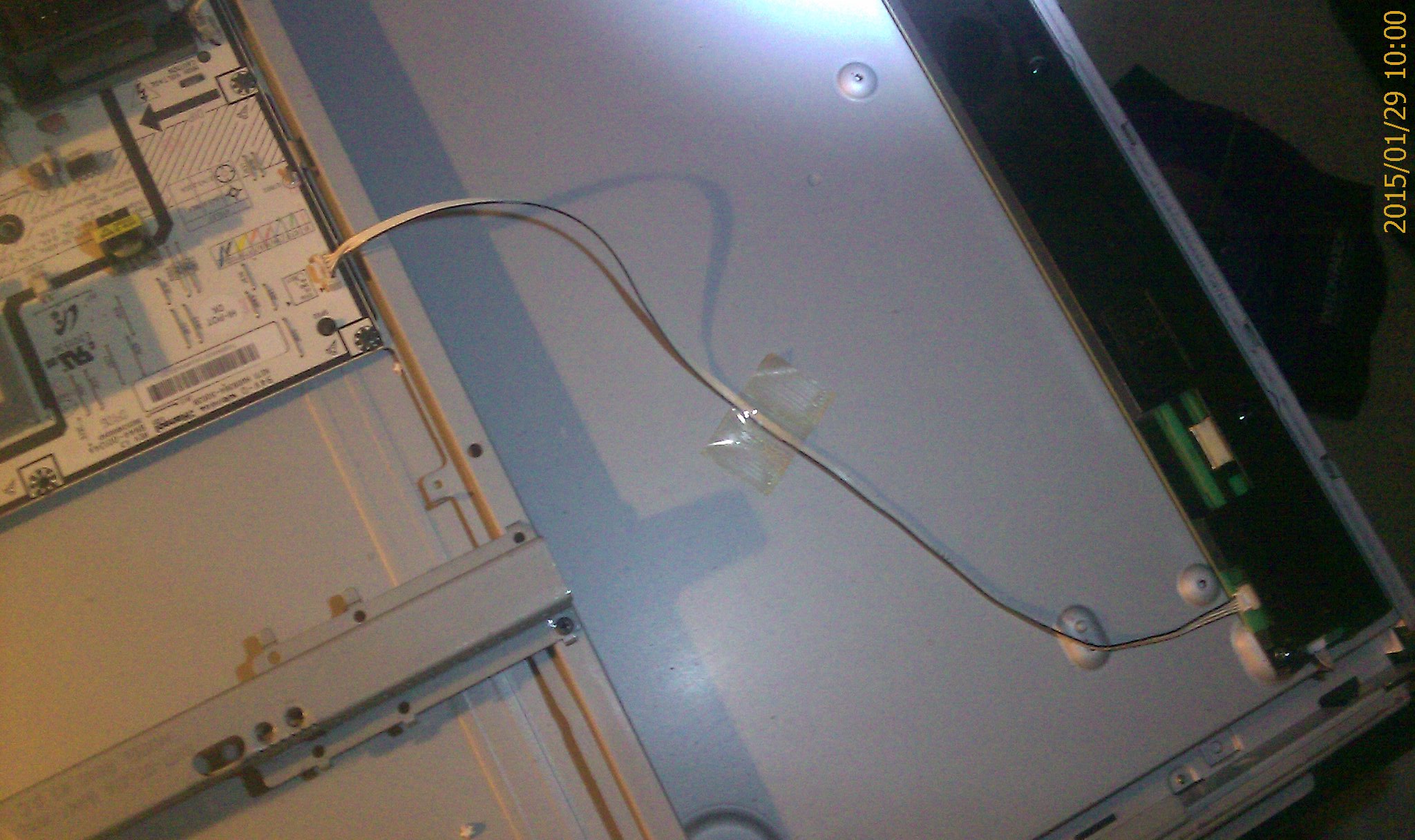 He had opened the TV from the back, trying to get to the backlight, supposedly gave up, reassebled everything and gave the TV to me.
