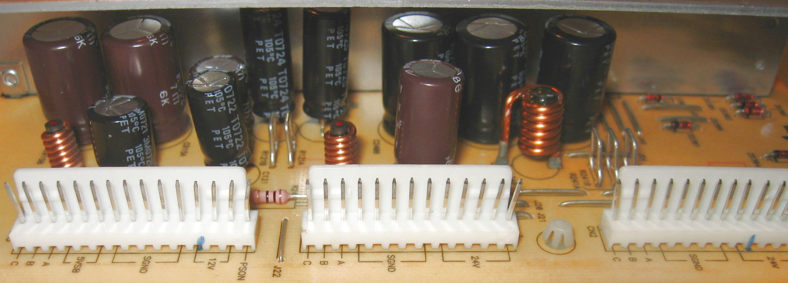 Replaced all that, got amber light and it turns to white when I'm pressing power button. Nothing else works. No 12 / 24V, only 5V. Voltage reads 165V on big capacitors with amber or white light. I tested all caps with capacitor tester, resistors, mosfets and diodes on heatsink, diodes on board - all tested good. Not sure what else to do. I checked treads about this model here - don't see anything with similar problem.