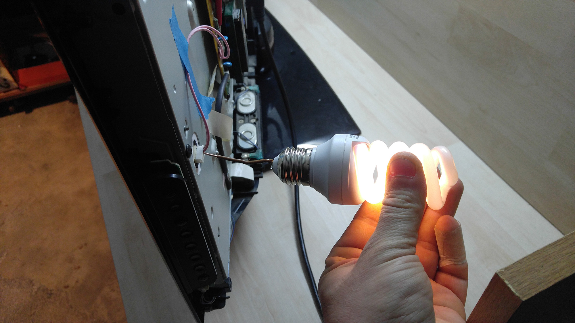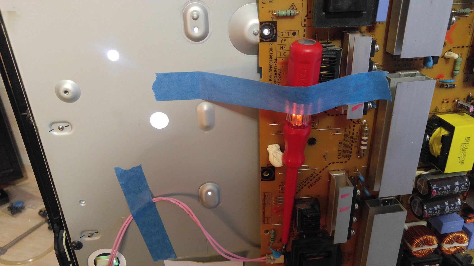 If I understand correctly those two wires should both be L and on the other side the tv where are only one wires per ccfl is ground ? So I only measured difference voltage between those two hot wires and not between ground and live (hot) ones ? Am I correct ?