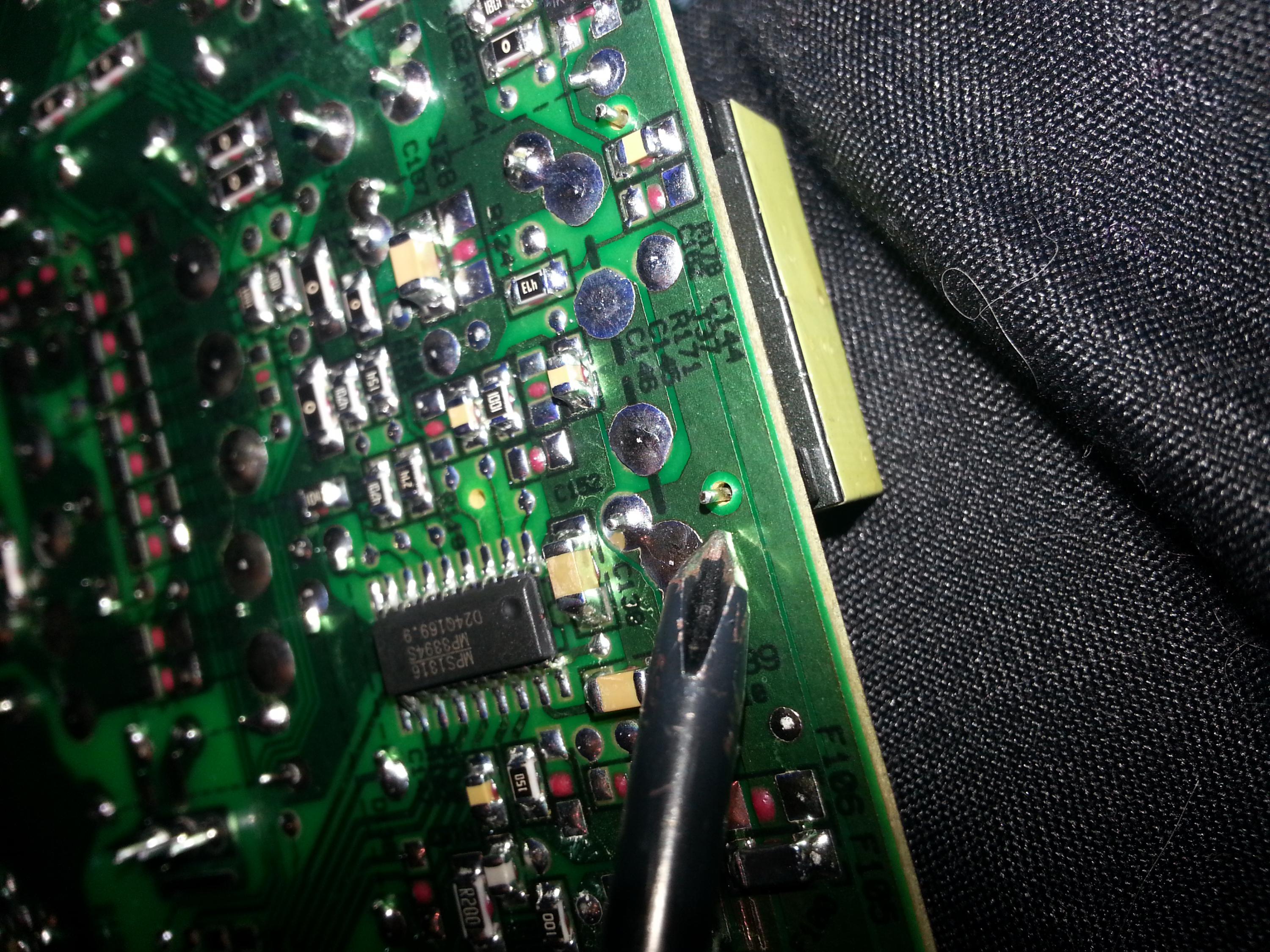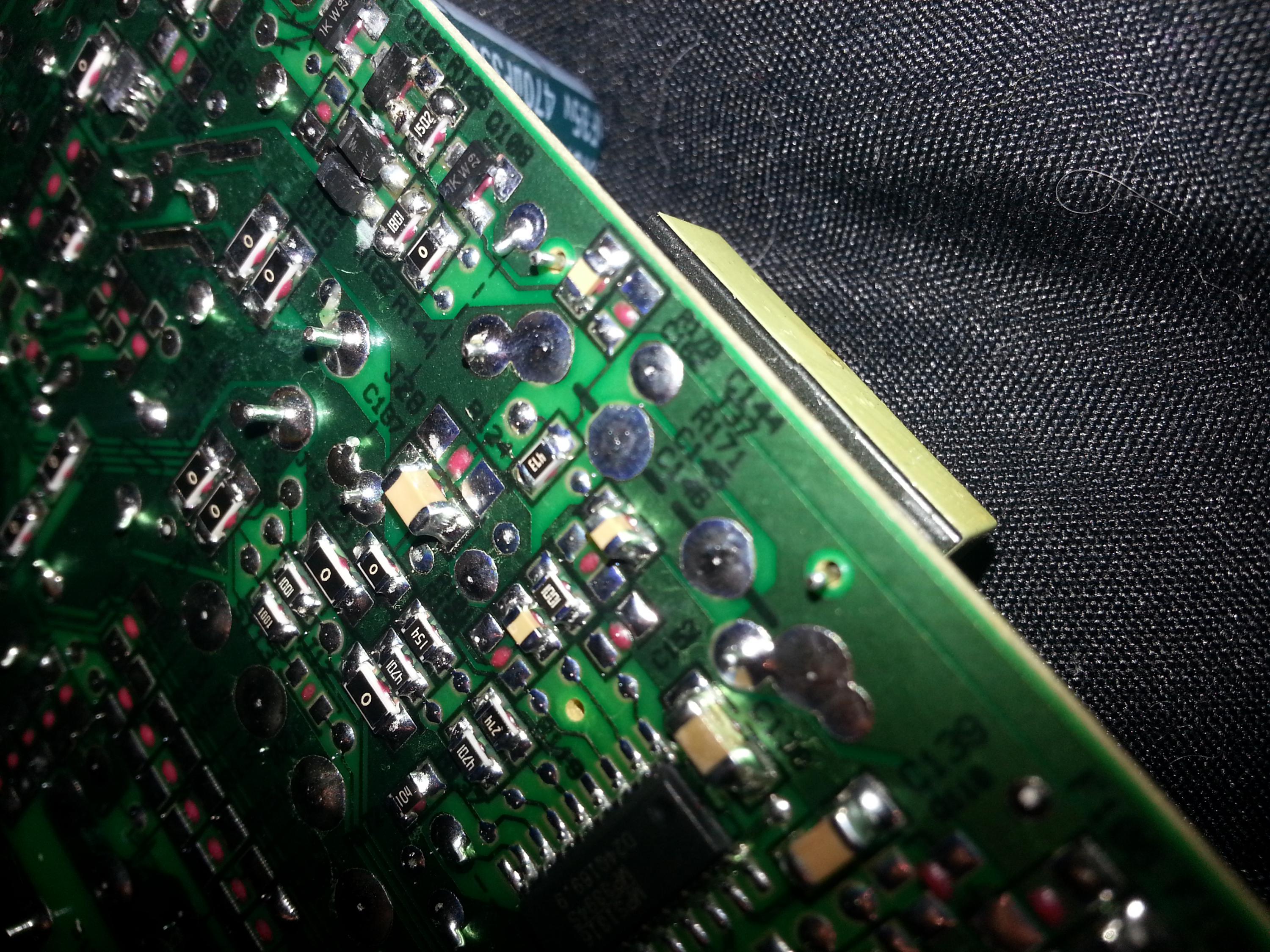 This is one of the shit est boards I seen in a very long time and it was the daughter board the traces just lifting off the board I had to use the capacitor leads to repair the the traces and the main board is not any better because I had to repair several traces for the daughter board to the main board