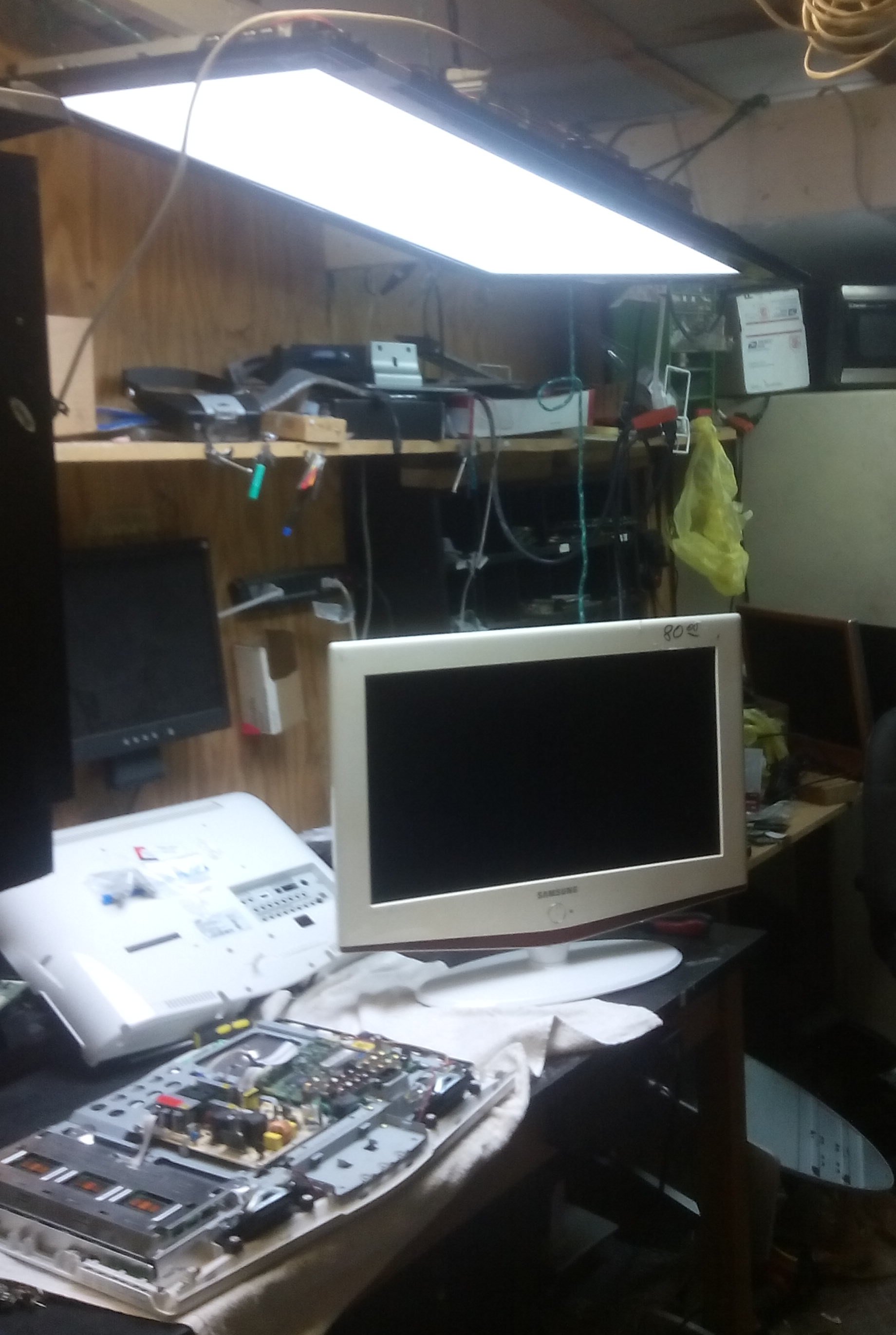 I had an Element 42" in with a busted screen. I have always wanted to use such a critter to be a good light source for my workbench.. (see pic)