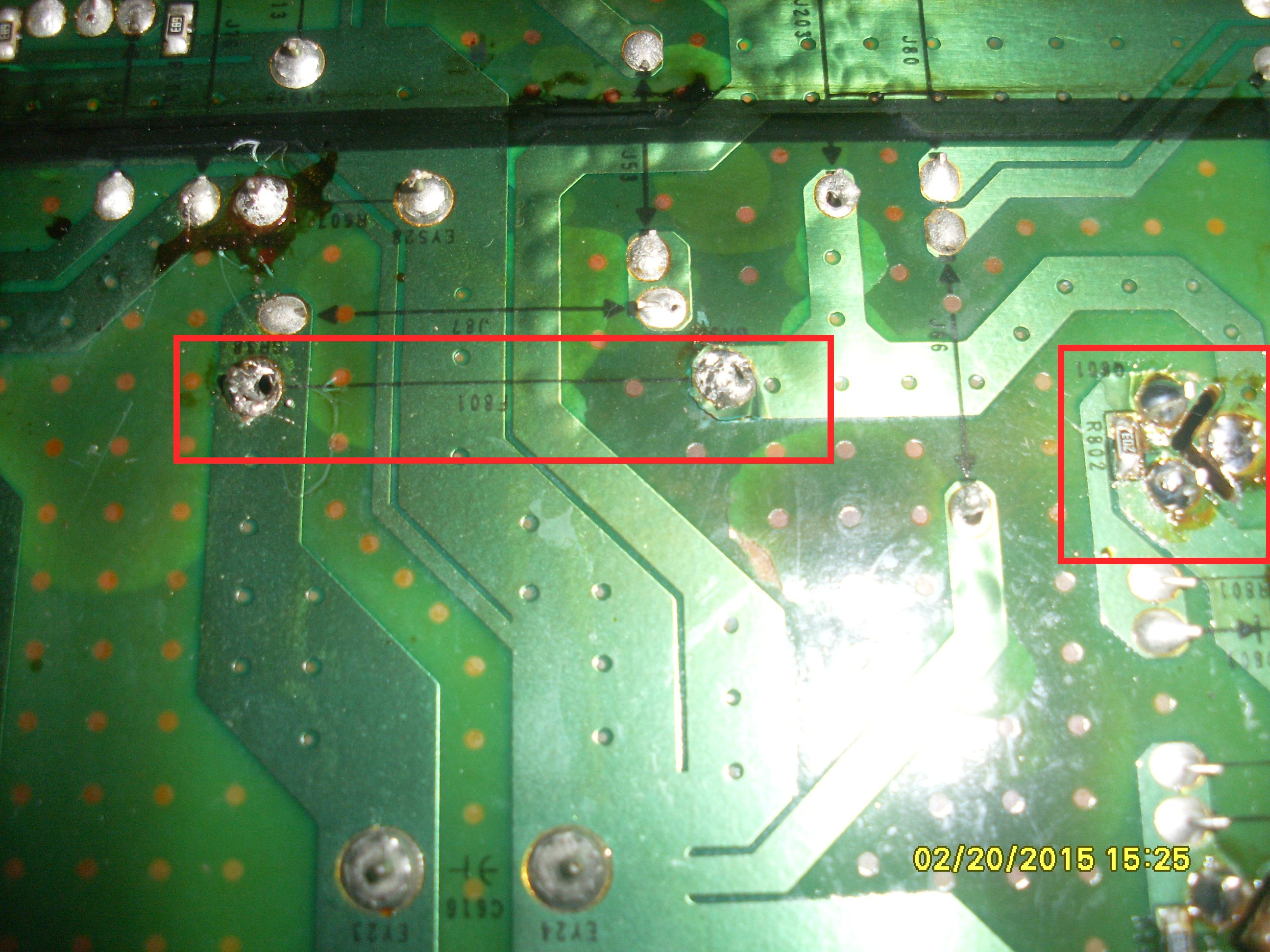 The FET goes to the fuse on the mid board.. The fuse checks out, but looks a little hinky on the TRACE side..