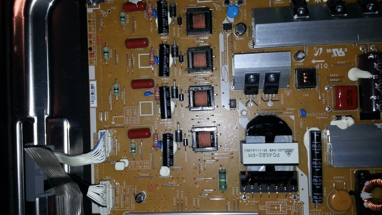 It's a Samsung UN46D7000 which works (when it's not rebooting) because the bottom quarter of the screen is darker than the rest of the panel. Of course I suspect bad led(s) but would like to be prudent before cracking this thing open.
