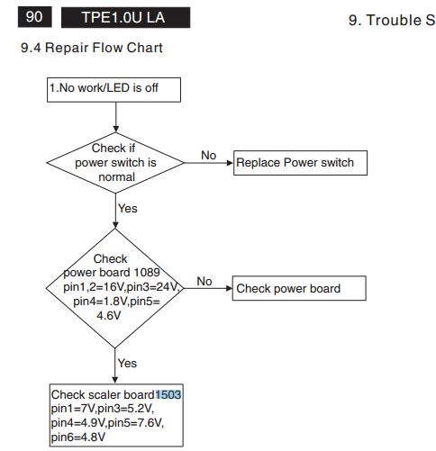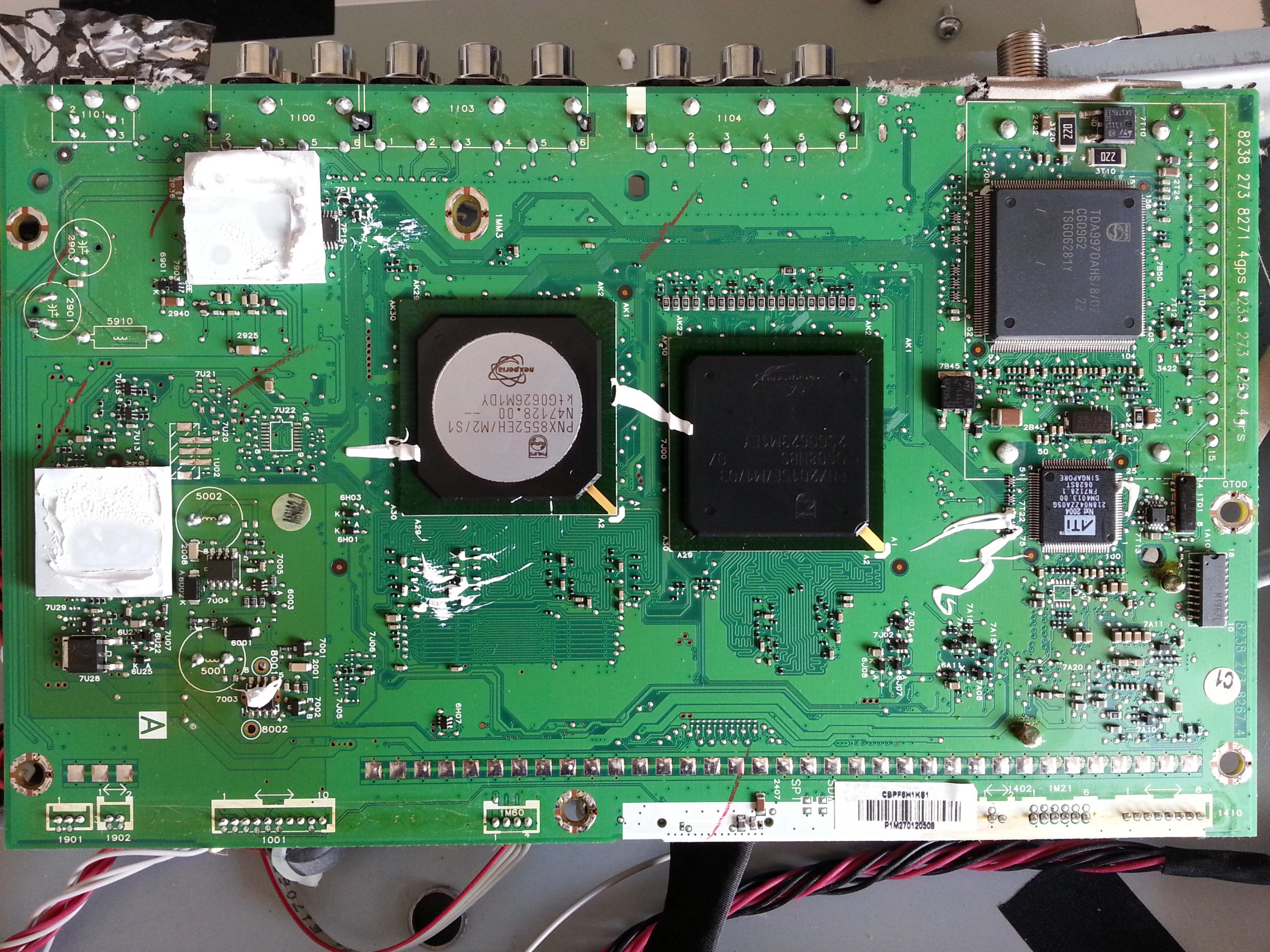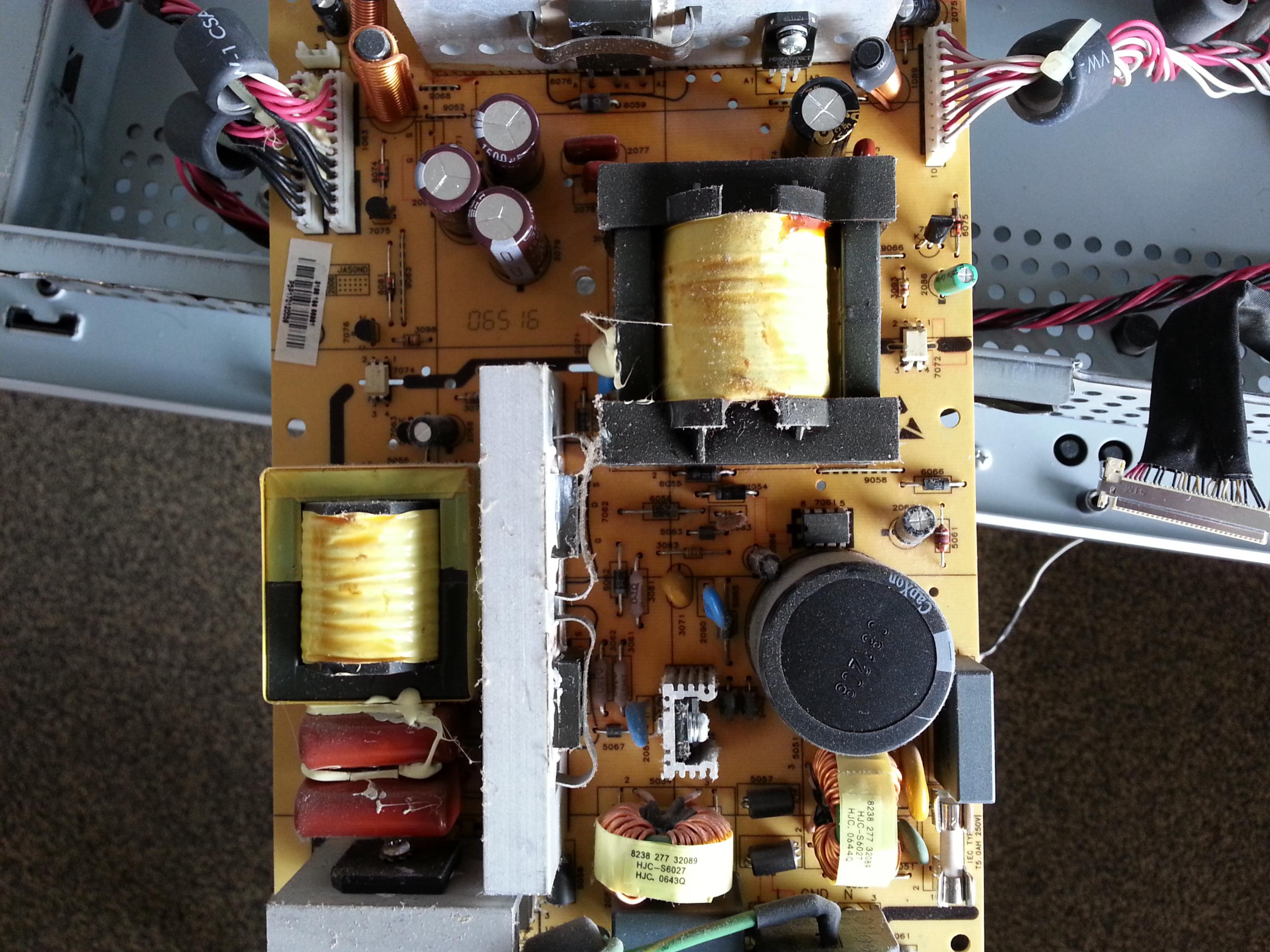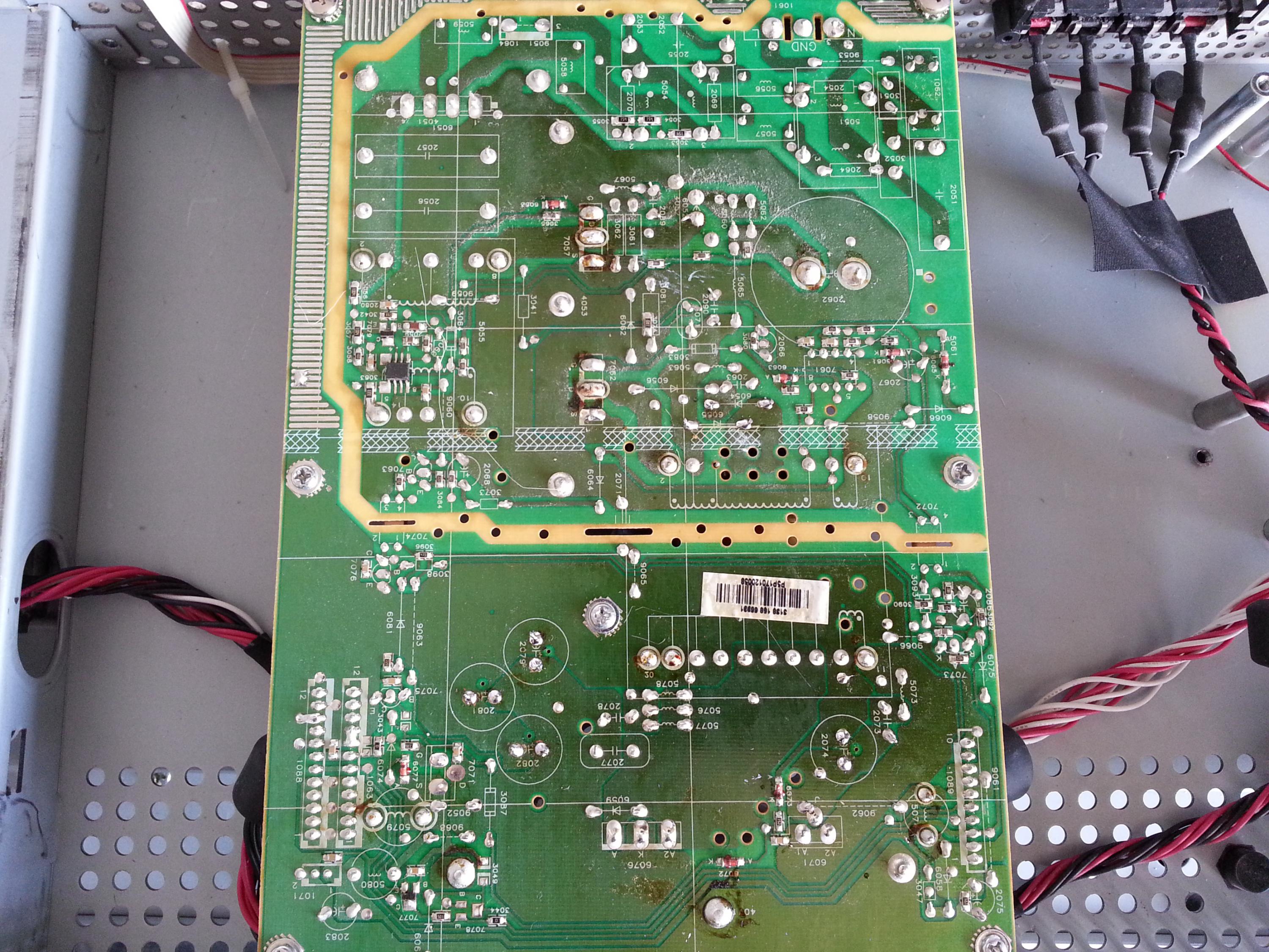 My Magnavox 42F531D/37 LCD television is exhibiting almost no signs of life (does not power on). I purchased the repair kit consisting of four capacitors and some diodes, which I successfully installed, but there is still no improvement. When the power is attached, the power supply makes standard noises indicating that power has been attached, but pushing the power button appears to have no effect. I've attached pictures of both sides of the power supply board and mainboard for reference. The looked okay to me, but I may have missed something.