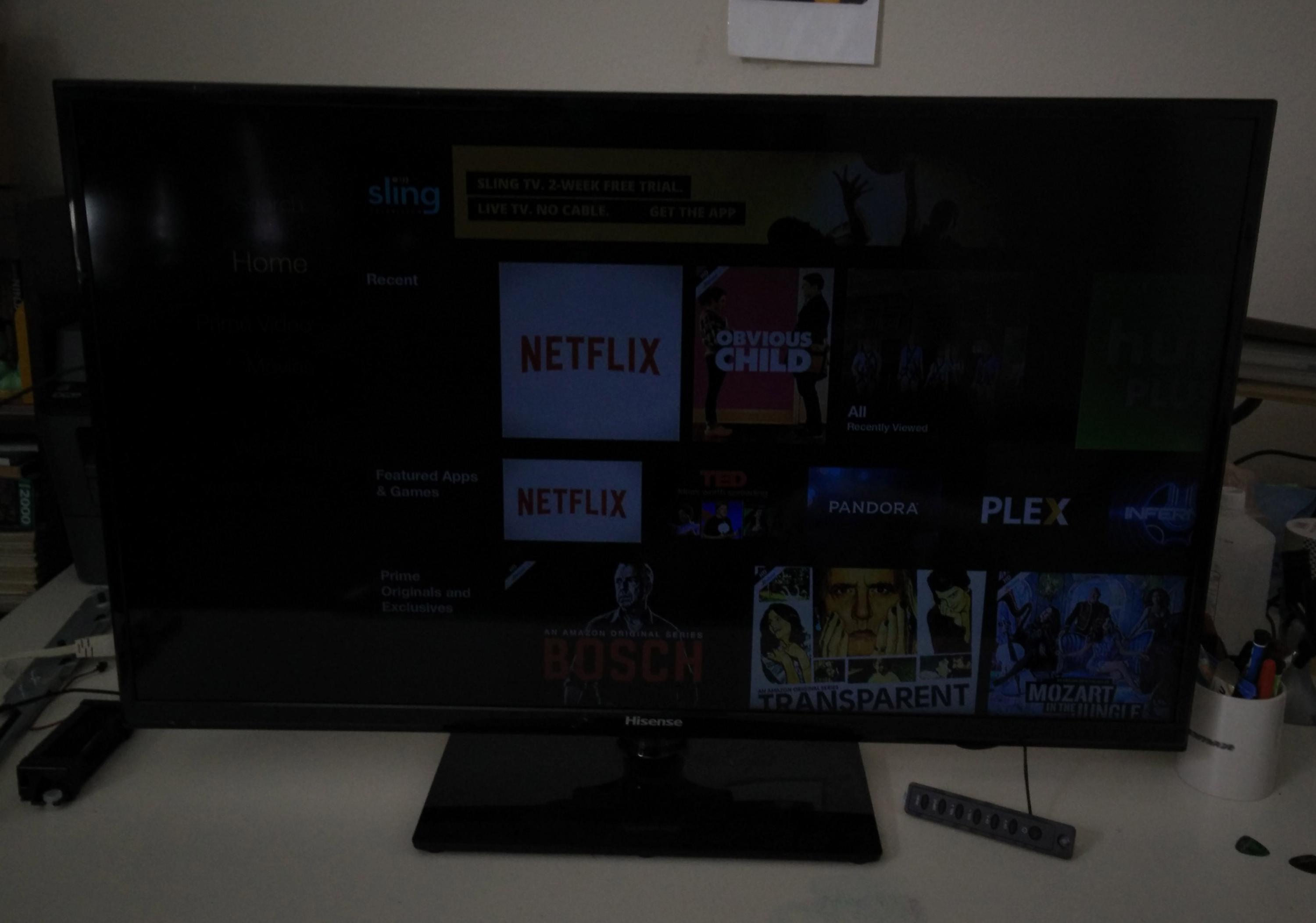 I am getting a dim picture. The TV will boot, and the panel will be full brightness for a split second before going dim. It is like it is in a power saving mode (picture below). I have seen the panel kick on all the way for a minute or two so I am guessing it is a power issue either from not enough power or something telling it to go into a power saving mode.