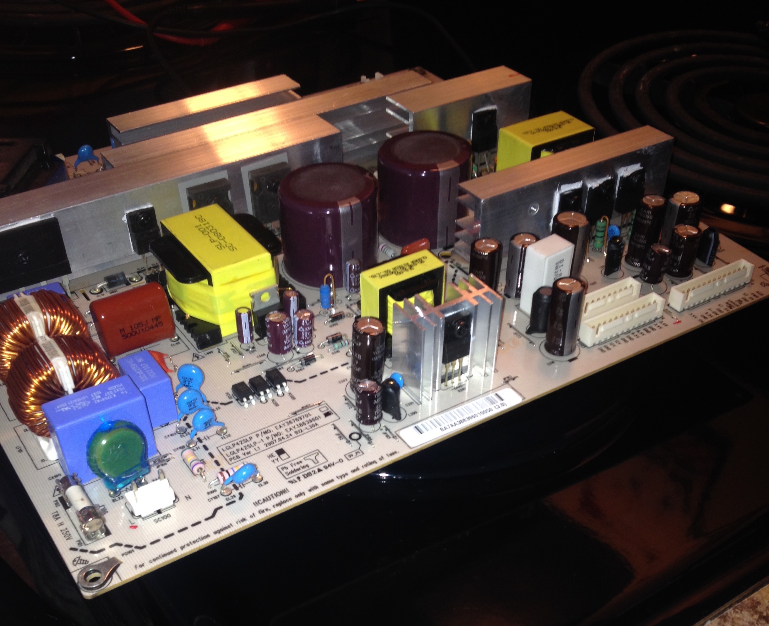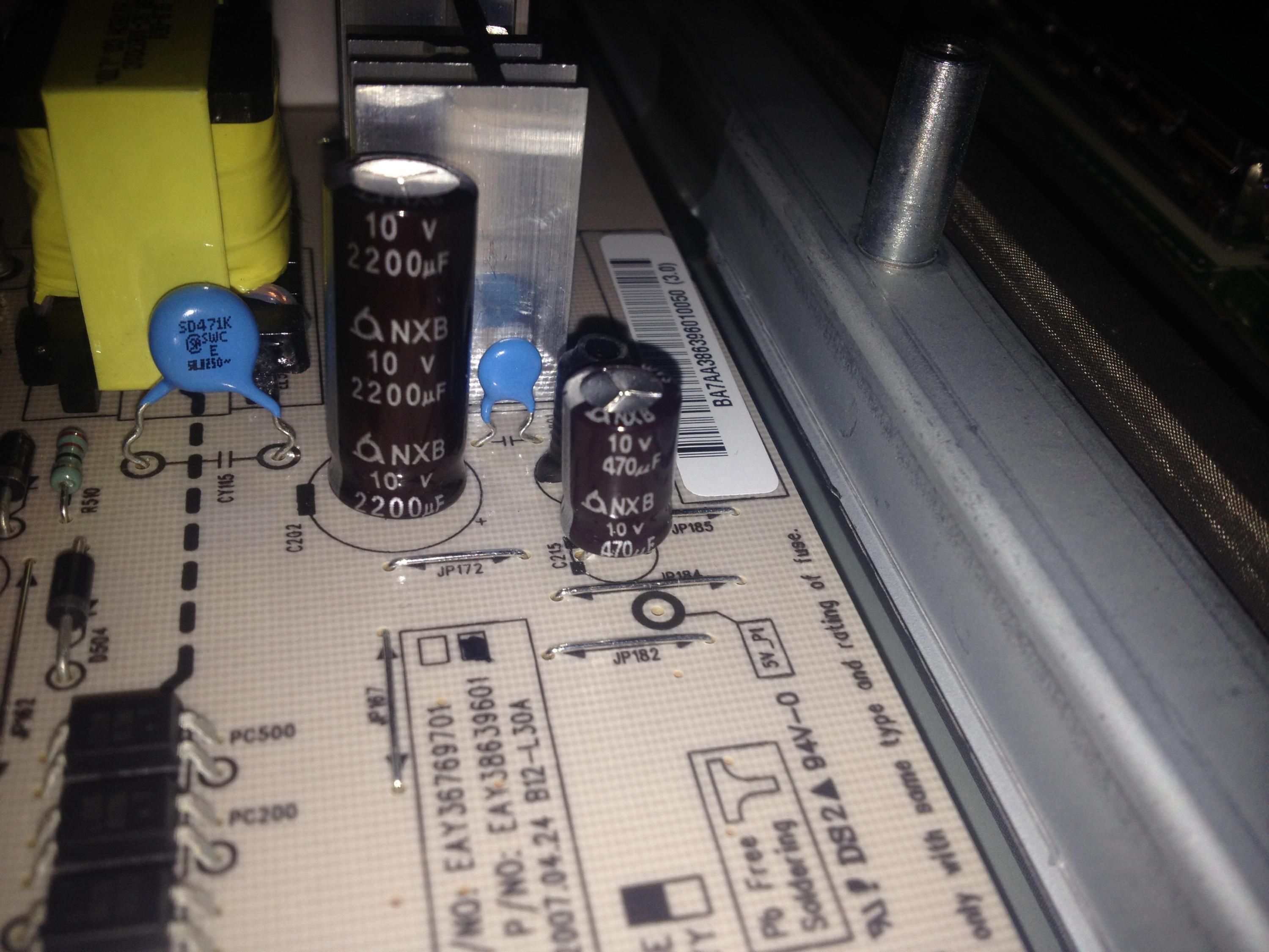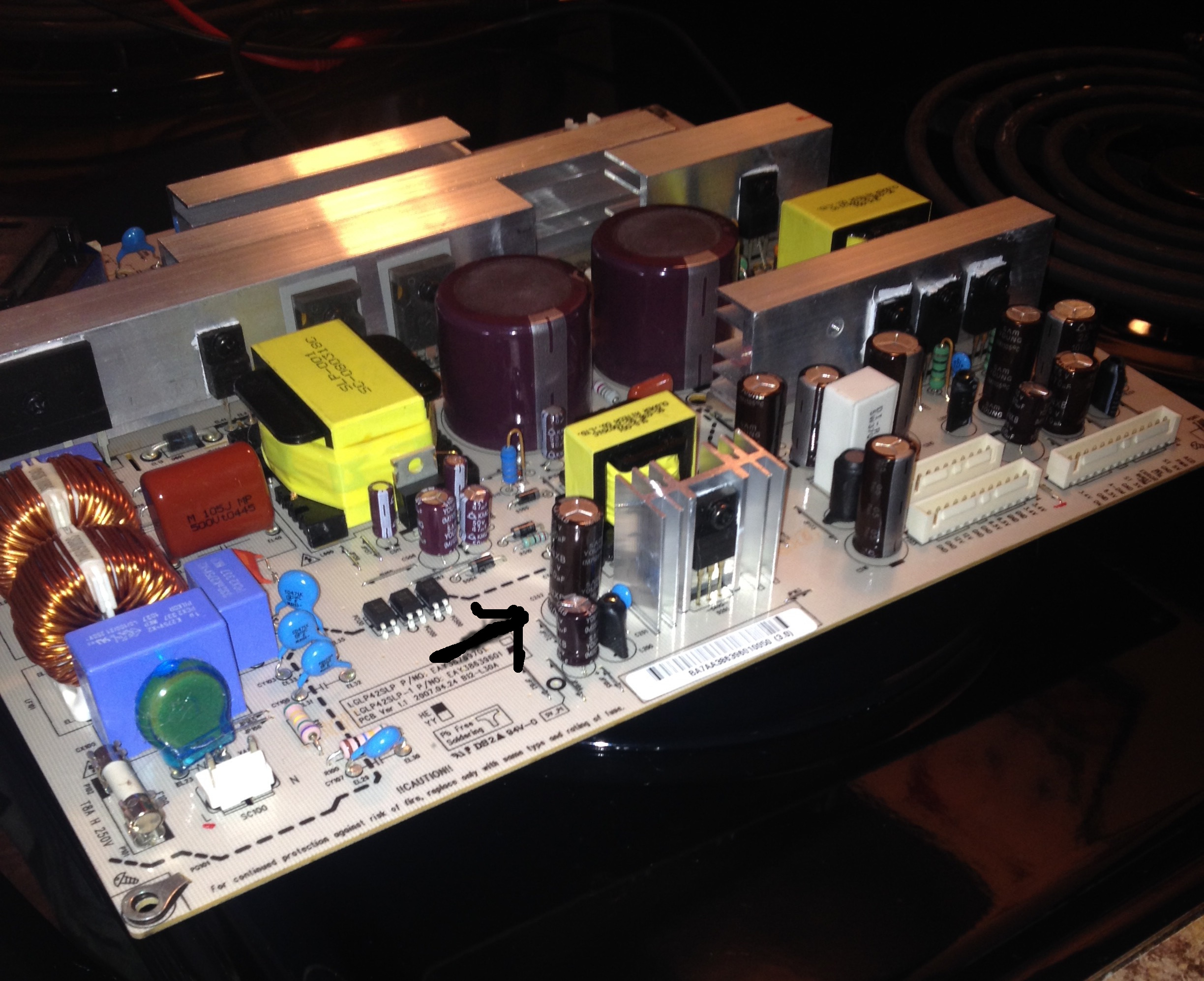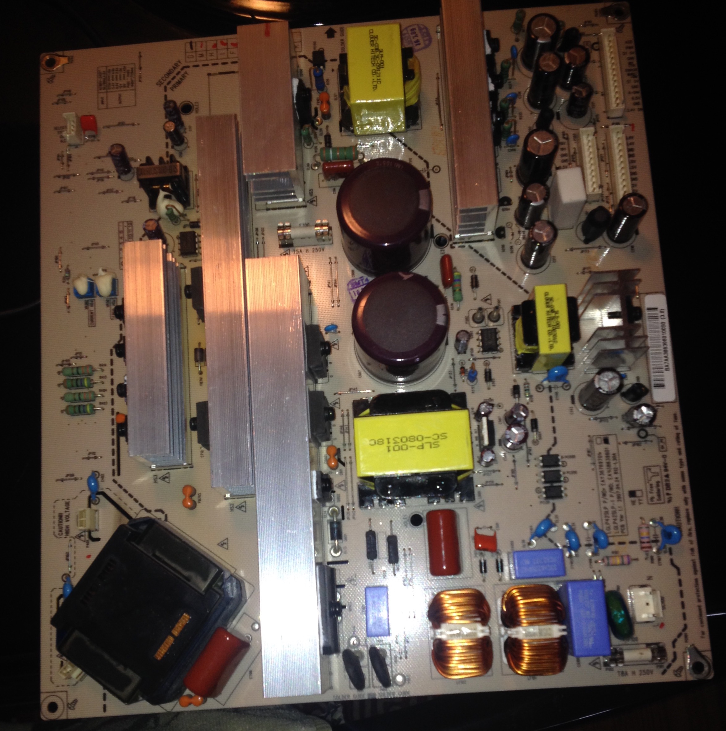 by x_orange90_xI have no standby indicator light and no light on the optical port. I checked the standby voltage on the two mosfets in the top left and they both read 30mV. I checked the fuse and it has continuity. I also checked the voltage on the two large 450v caps they both read 153v. All of these voltages are the same with and without the main board connected as well as with backlights connected/disconnected.