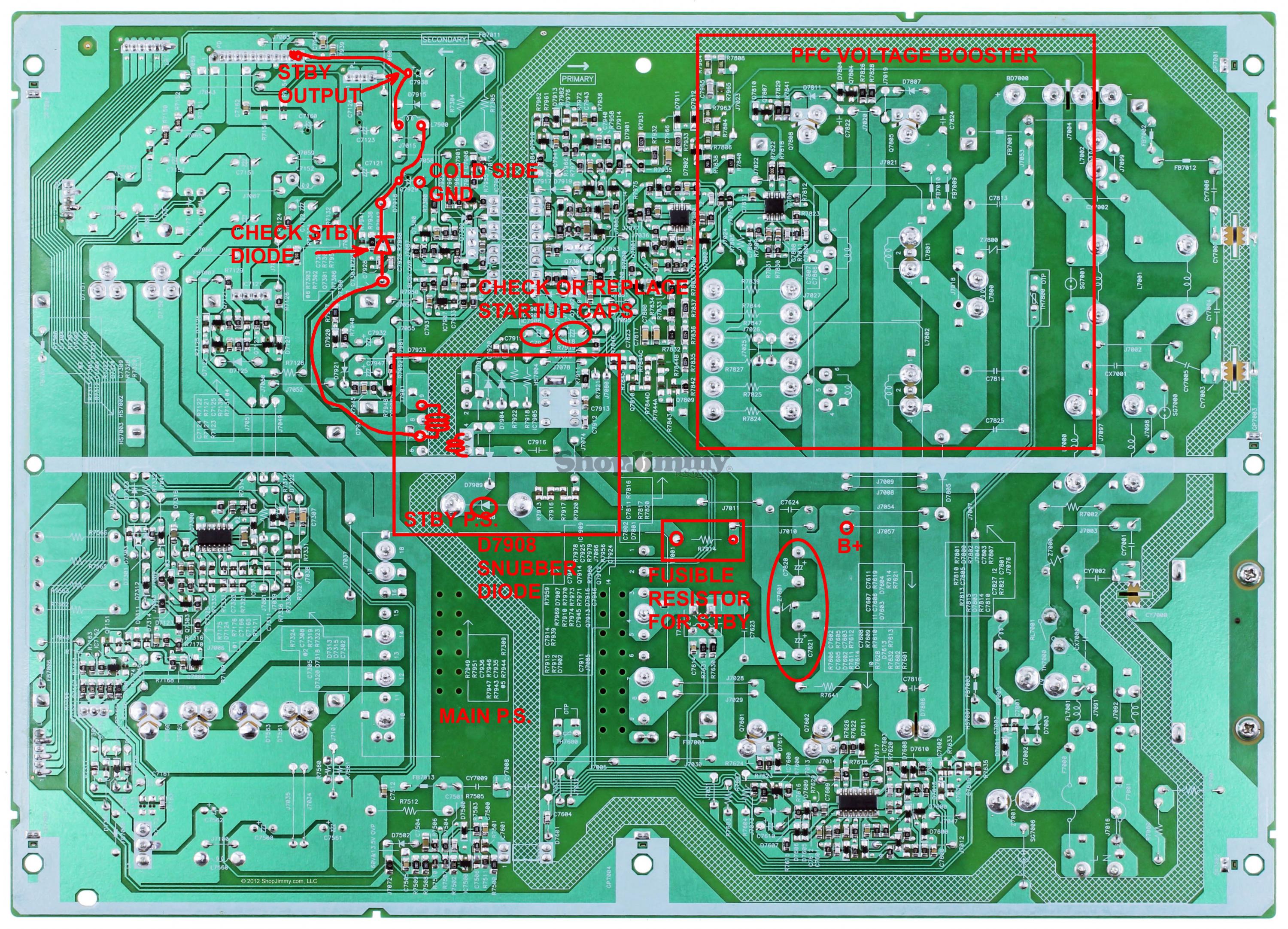 Hey folks. I am trying to repair this TV and don't have any standby output (5V) on the power supply DPS-286AP to the main board. I have replaced IC7905, R7918, R7914, and D7908 as to Shopjimmy repair kit and I still don't have any standby output (5V). Any help would be greatly appreciated.
