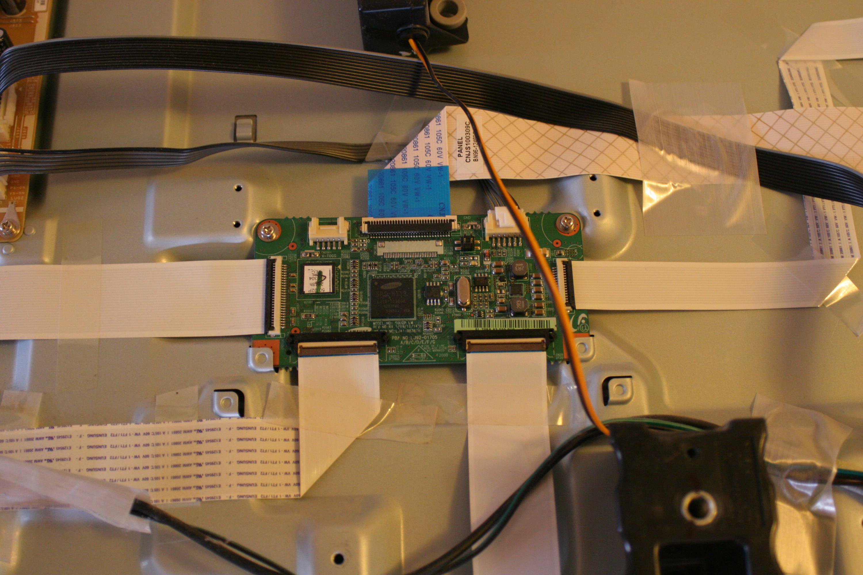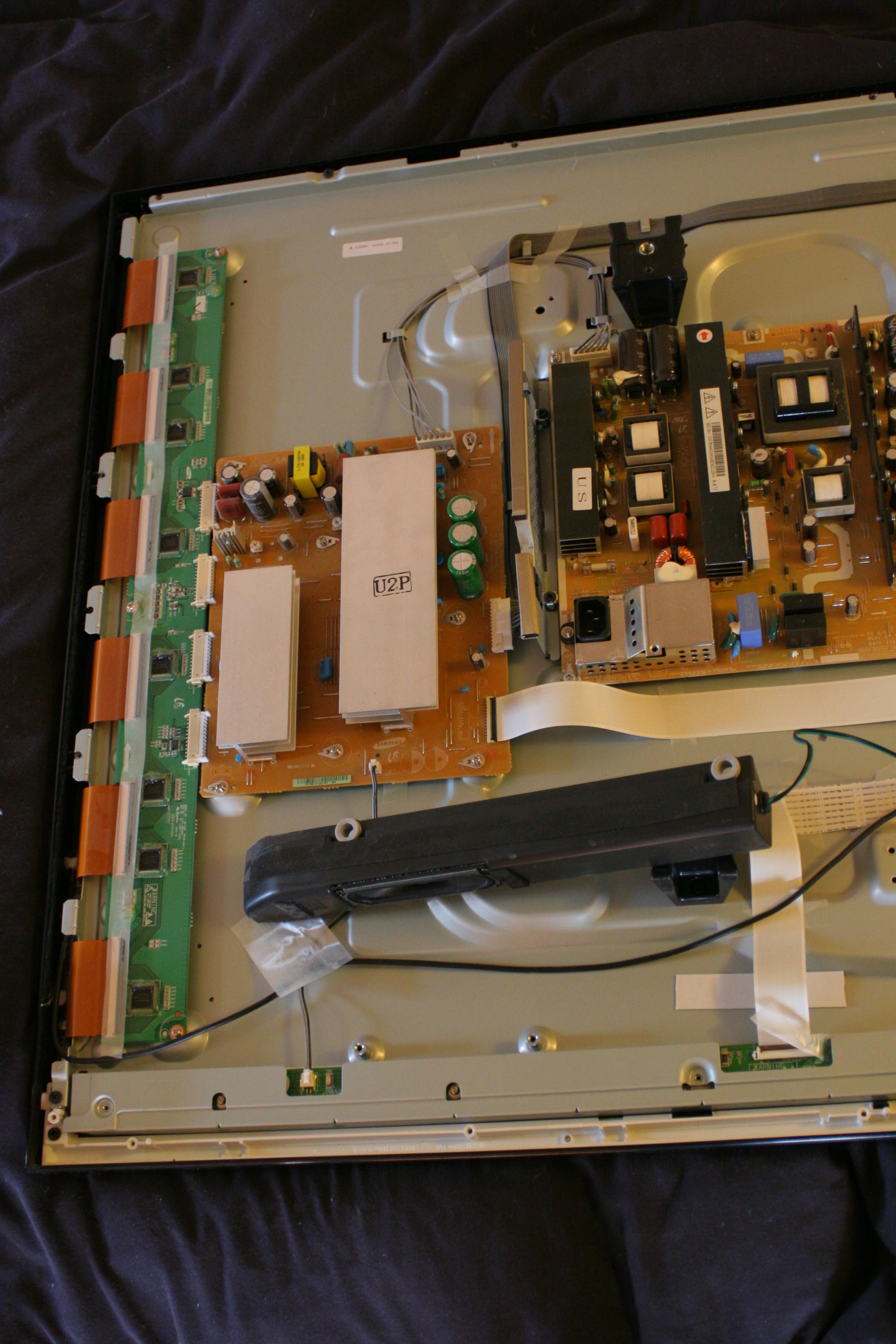 Shortly after it turned 4 years old, my Samsung PN50C430 (A1DXZA - Version NY02) developed a vertical strip of pixels that ranges from working fine, to a sort of dancing rainbow type thing, to a black strip with one or more single color stripes going through it (a picture of the symptom is attached). I heard from two sources that it is likely a buffer issue, but that the buffer boards on this model are somehow bonded to the plasma panel, and thus can't be (easily at least) replaced independently from the panel.