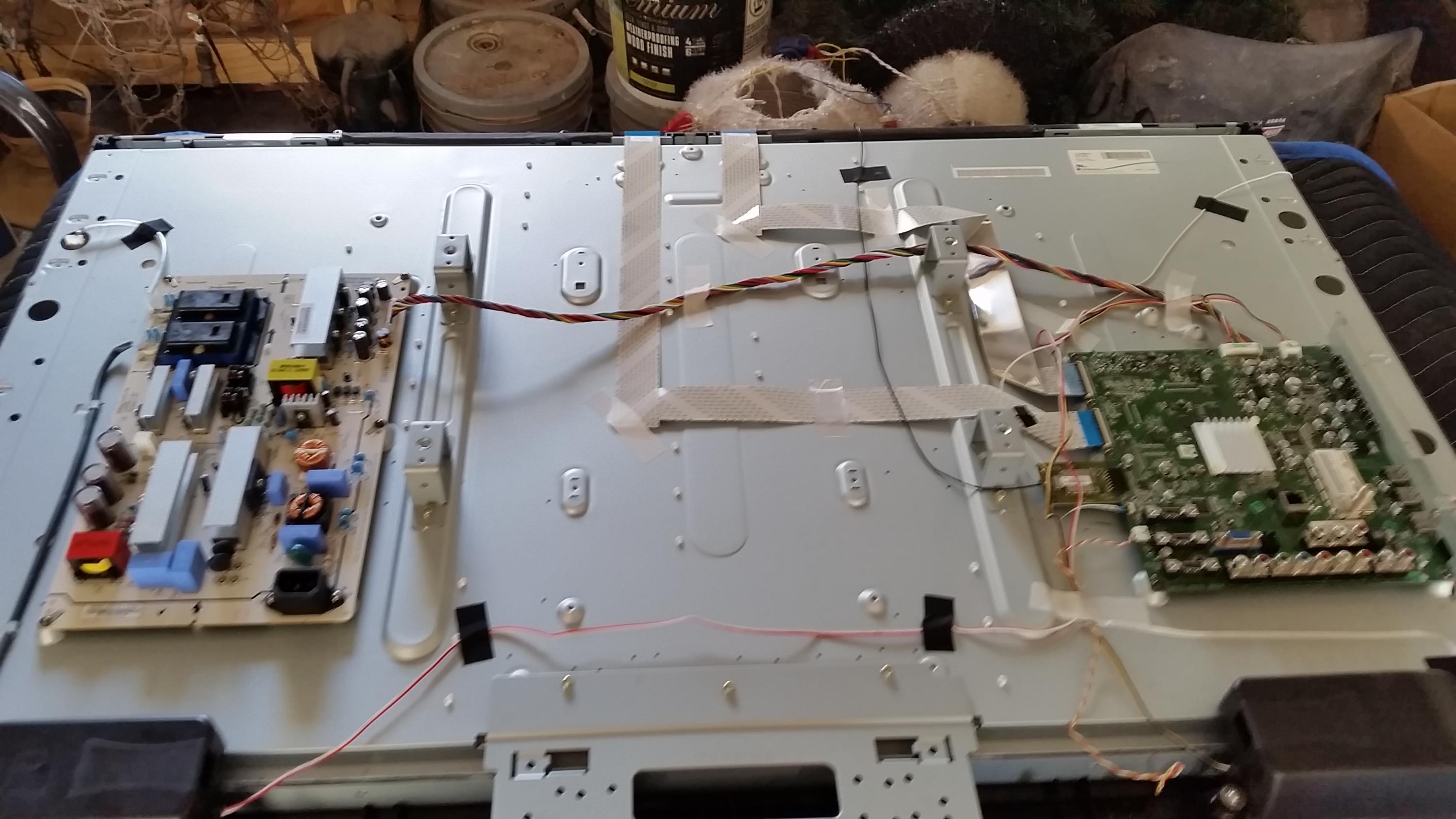This is the TV This TV is a little different from the Samsung I have worked on. Power supply is on the Left side, Main Bd is on the right side, T-CON , not in the picture is on the bottom. I am assuming that the boards in the middle are the LED...