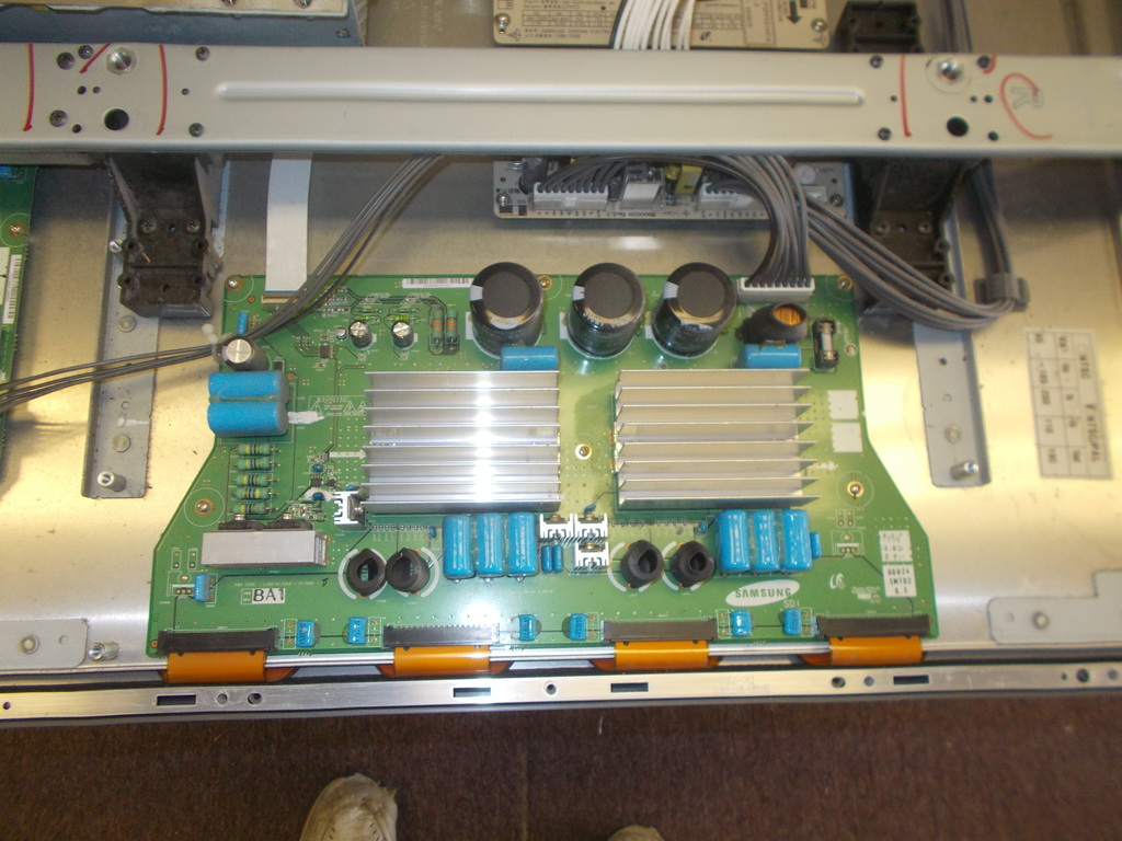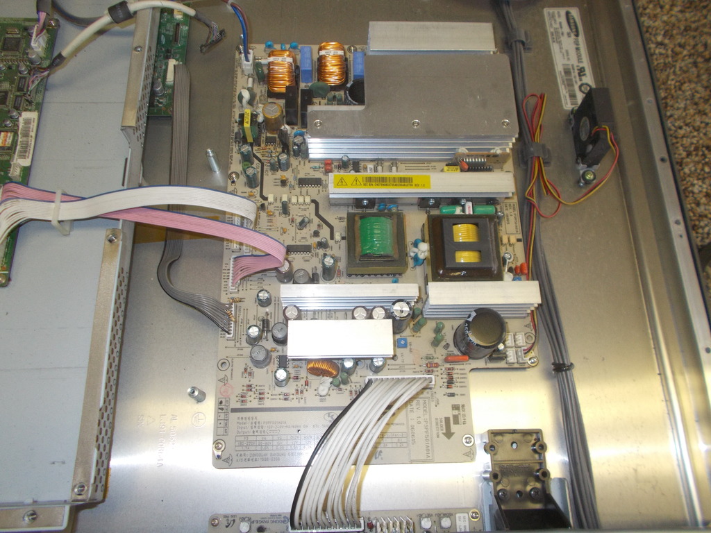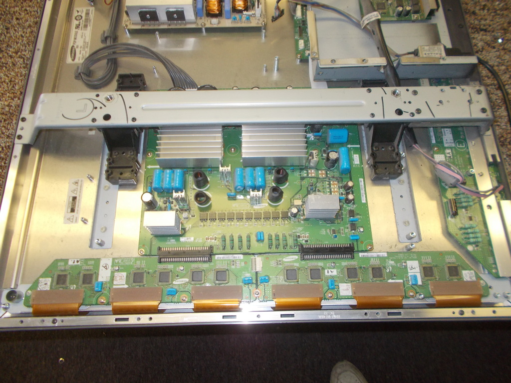 Picked up this TV off of craigslist for $20.00. When you turn it on, the power supply would click on and off. Opened it up and found bad caps on the ysus and PS. Replaced all bad caps and checked all fuses to make sure they were good. Tried turning TV on and and measured VS VA voltages which were correct until TV shut back down.