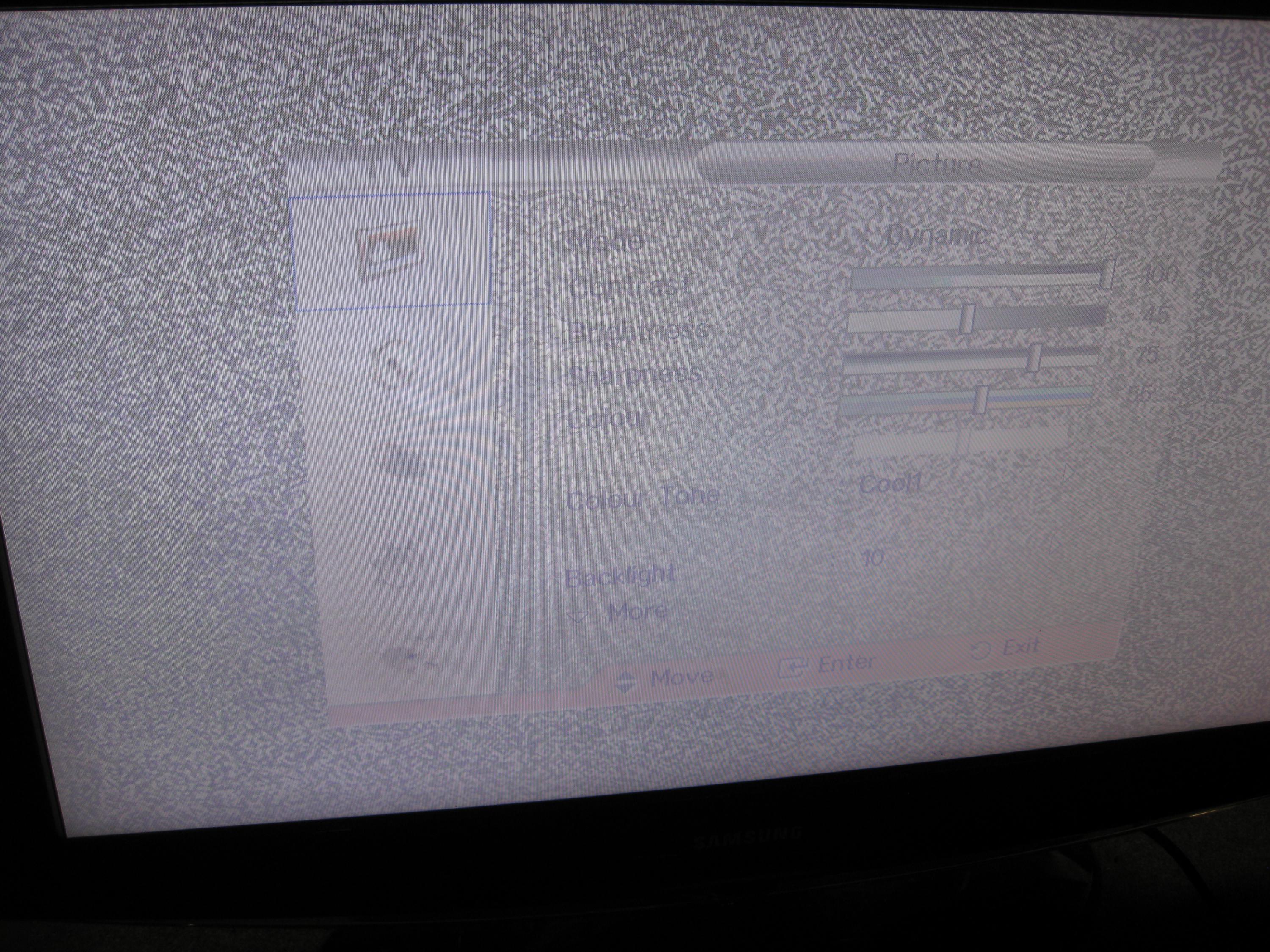 It manages to power up tune in and do everyting else just fine it just looks like some one cranked the back light up to eleven. That said there is slight discoloration across the panel
