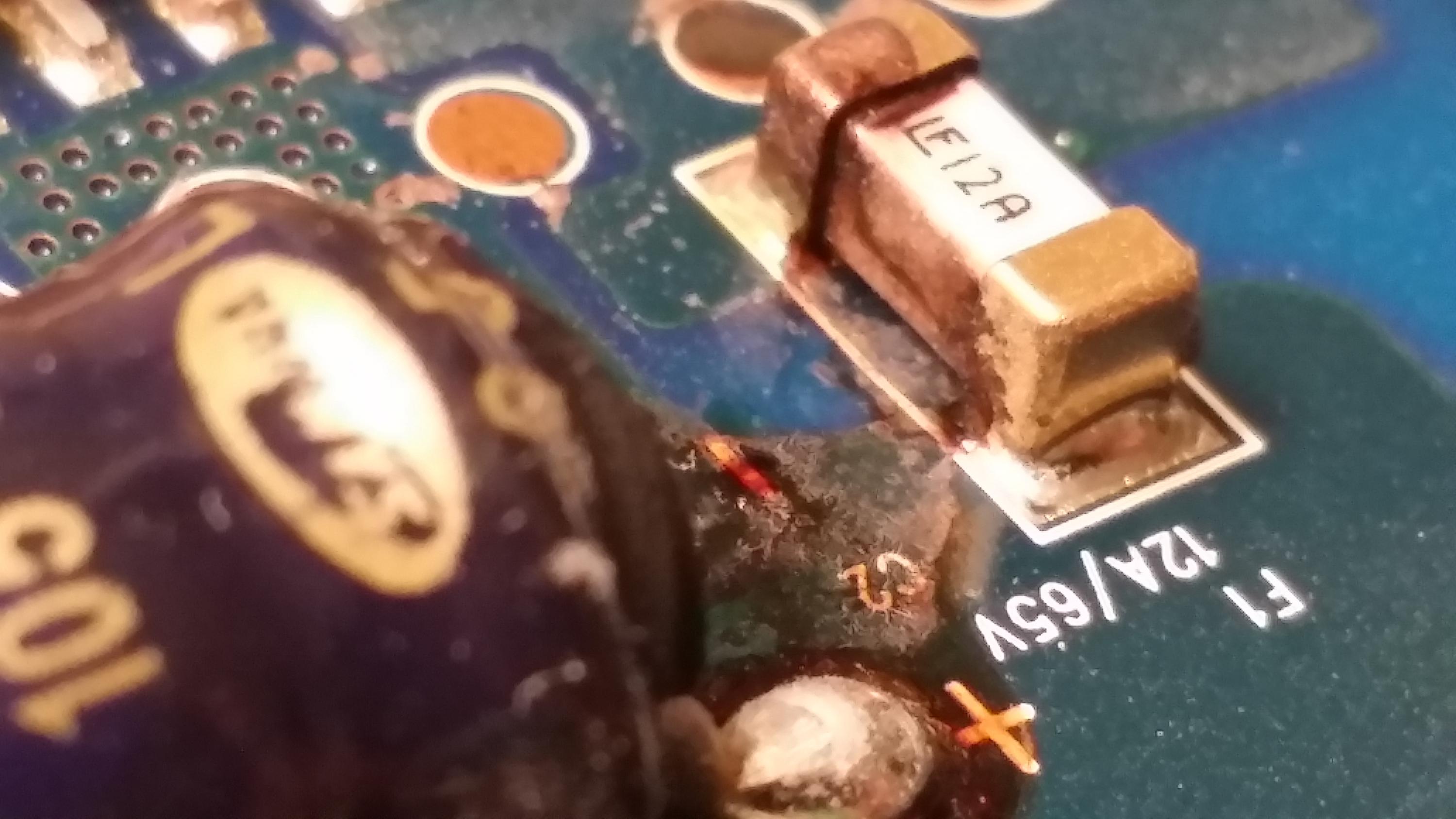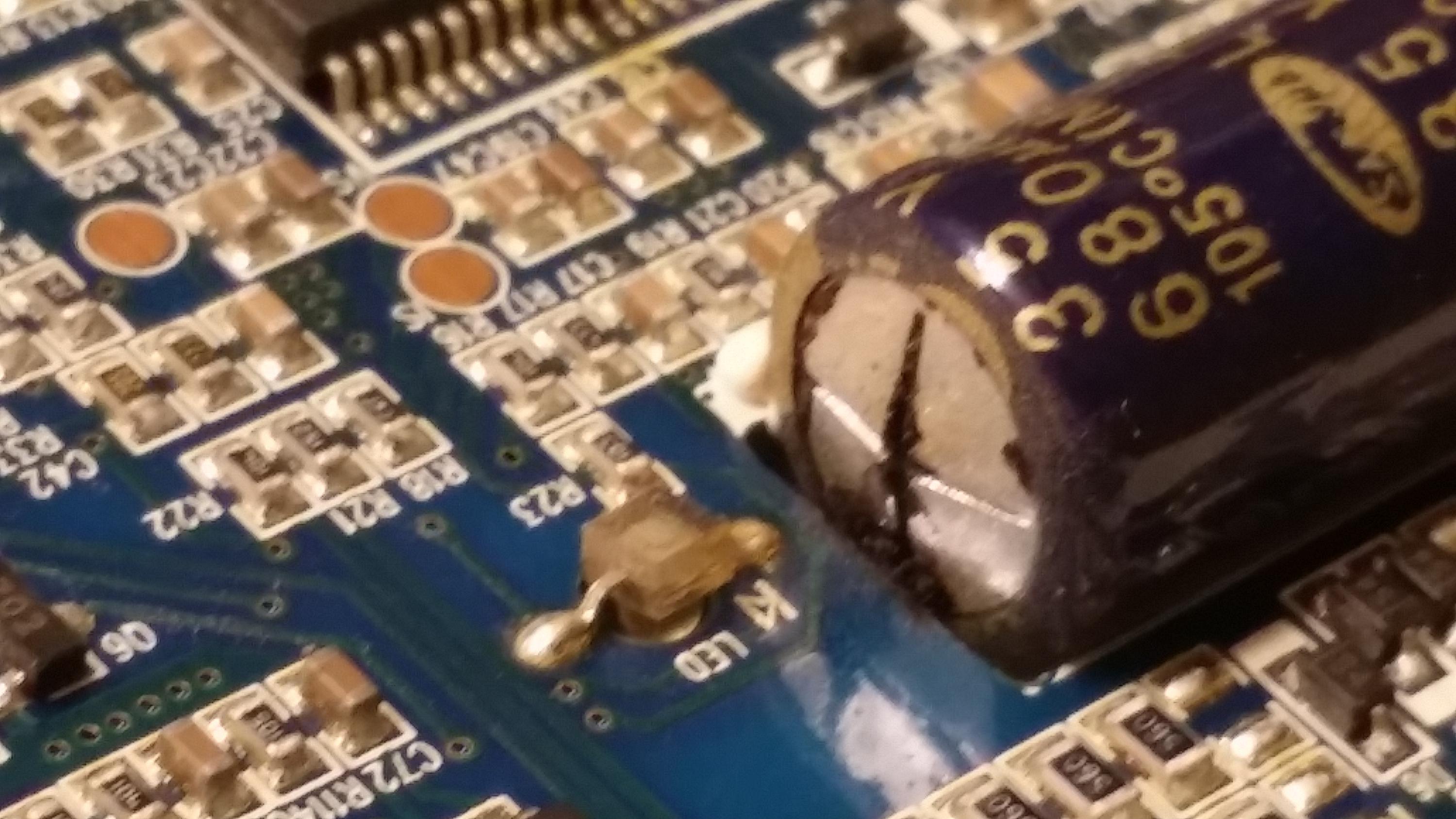 It looks like the cap by the white fuse has bottom rubber seal bulging out?