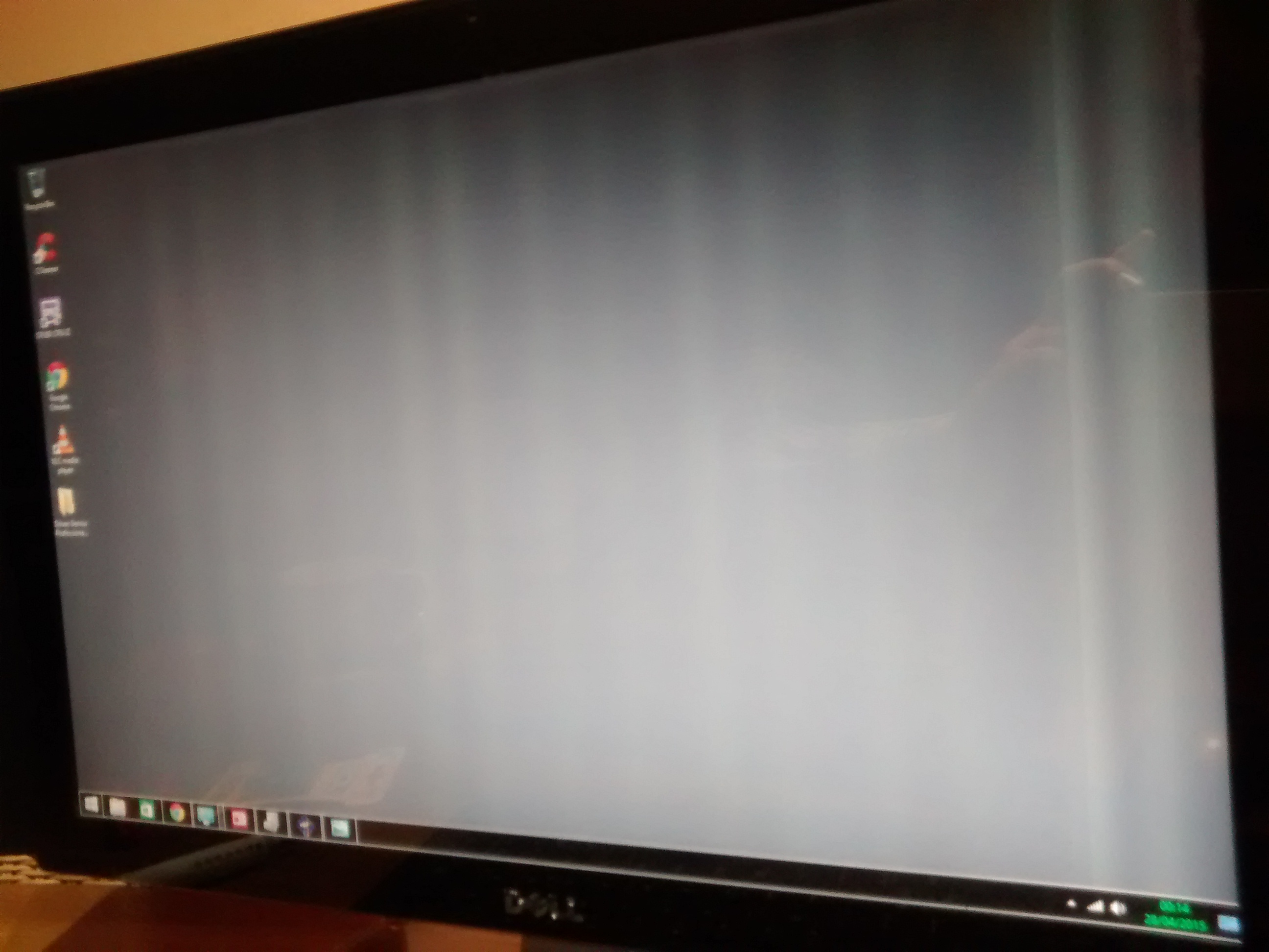 The image is similar but not the same as ( through experience ) a panel with perished tab bonds . But before there would be complete sections missing . As pictured the display is still there but there are bright bands vertically across the screen . The most irritating part is the wide band on the right - which I suspect is a bad tab bond