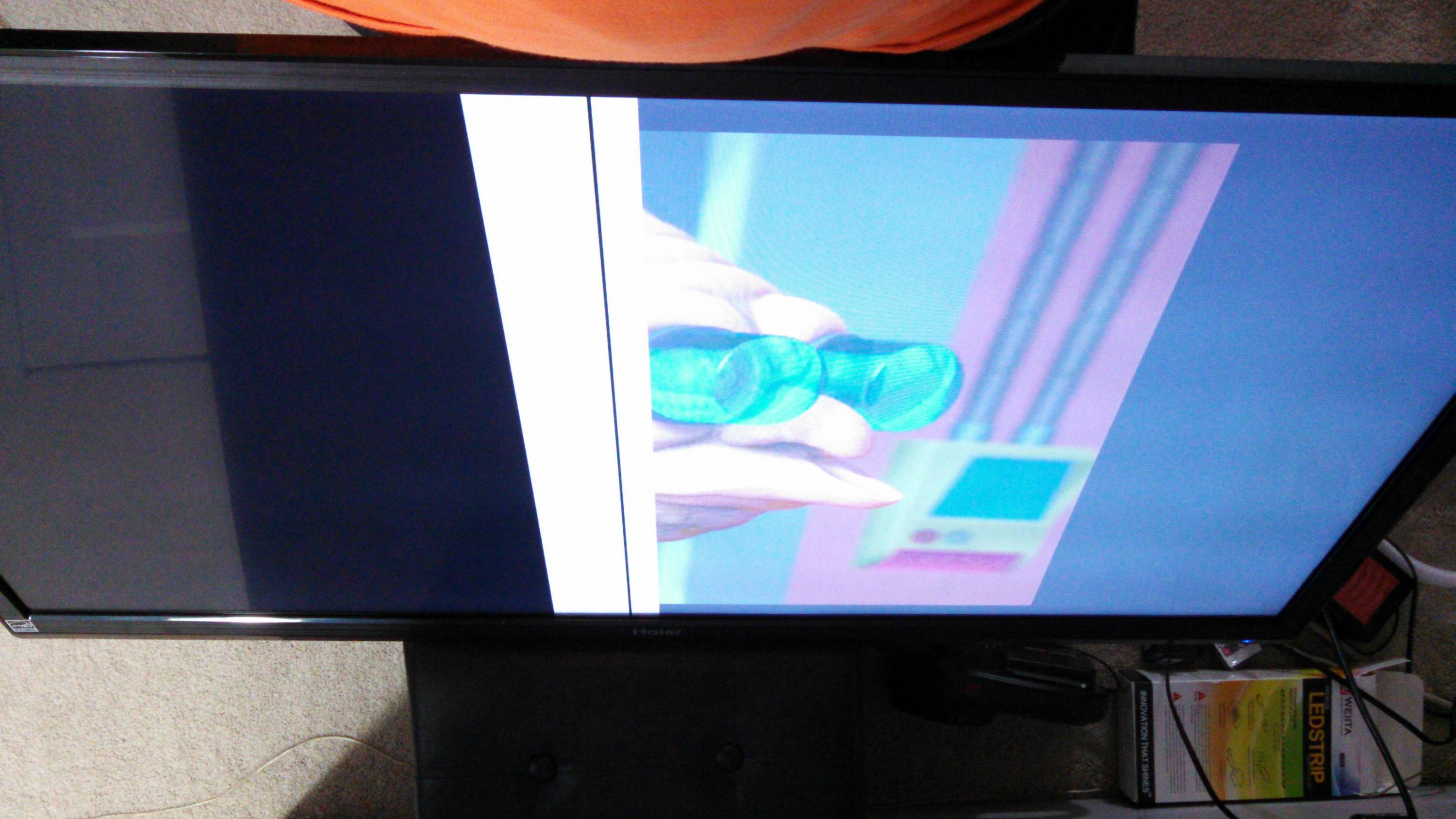I plugged TV into a pure sine wave UPS and around that time it started making a buzzing sound for about 2 minutes whenever first powered on. The pure sine wave should be better for it than regular so maybe that part is a coincidence not sure. The TV was on and I needed to change a light switch I just left it on and let the UPS keep it running. After I swtiched the circuit breaker back on the TV was still on but picture is messed up. I did some research that strongly suggested that the t-con board was the issue so I swapped with one from ebay but it had no effect. By the way it is now plugged into a regular outlet. The backlight appears to be fine but you can see the vertical lines and half the screen is black. After being on about 30 seconds the half that was on goes black as well. The pictures are when first turned on and after 30 seconds.