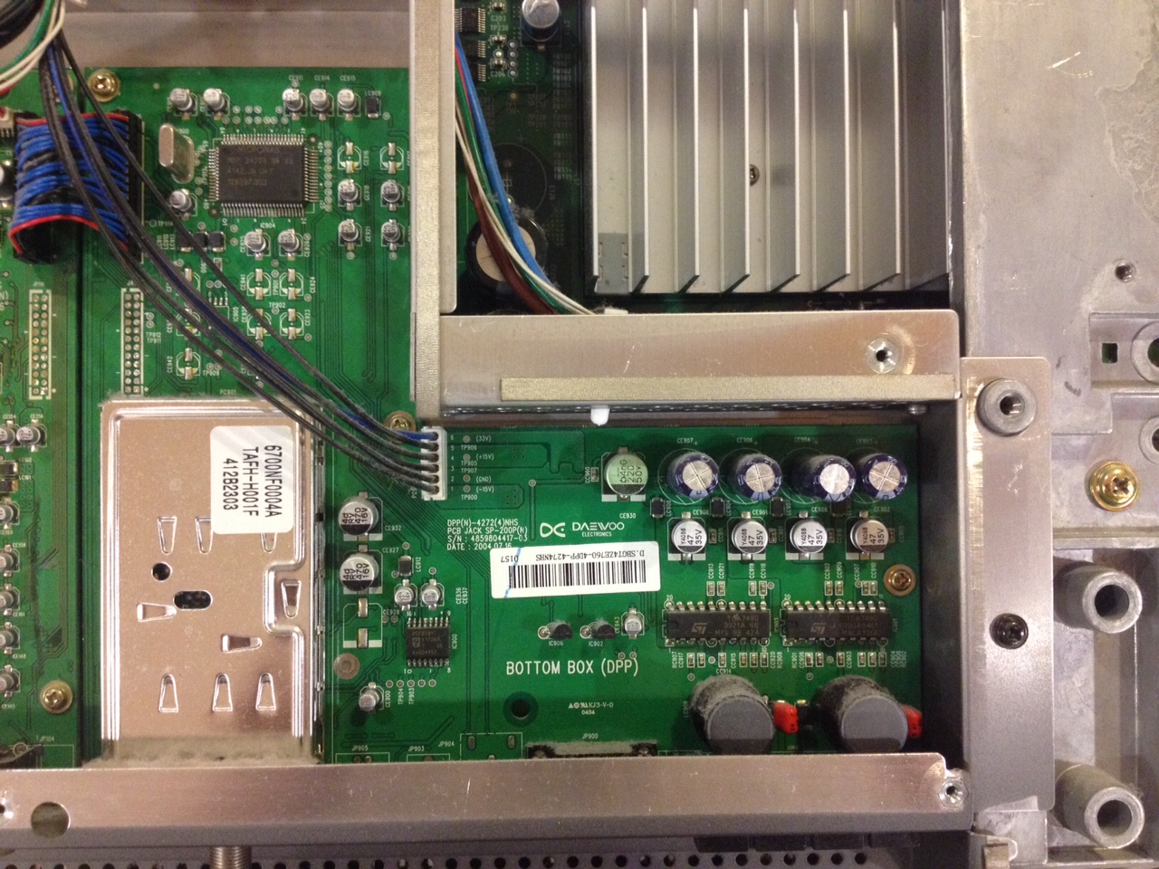 I found this ancient (2004) Daewoo DTS-42 plasma TV. When I turn the TV on, the status light turns green, the screen is on but black for a few seconds, then it kicks into standby mode and the light turns red.