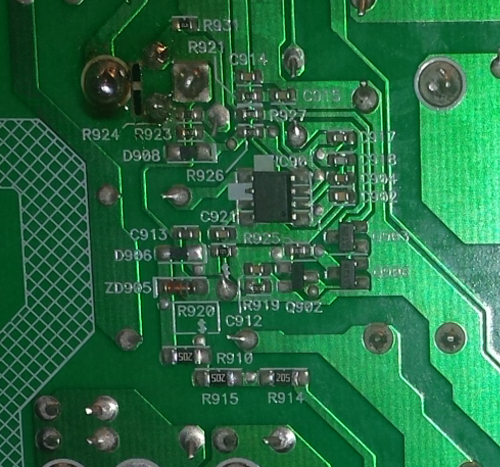 As promised I reversed engineer a bit the circuit around IC901 so as to eliminate the relation of ZD905 to the IC.