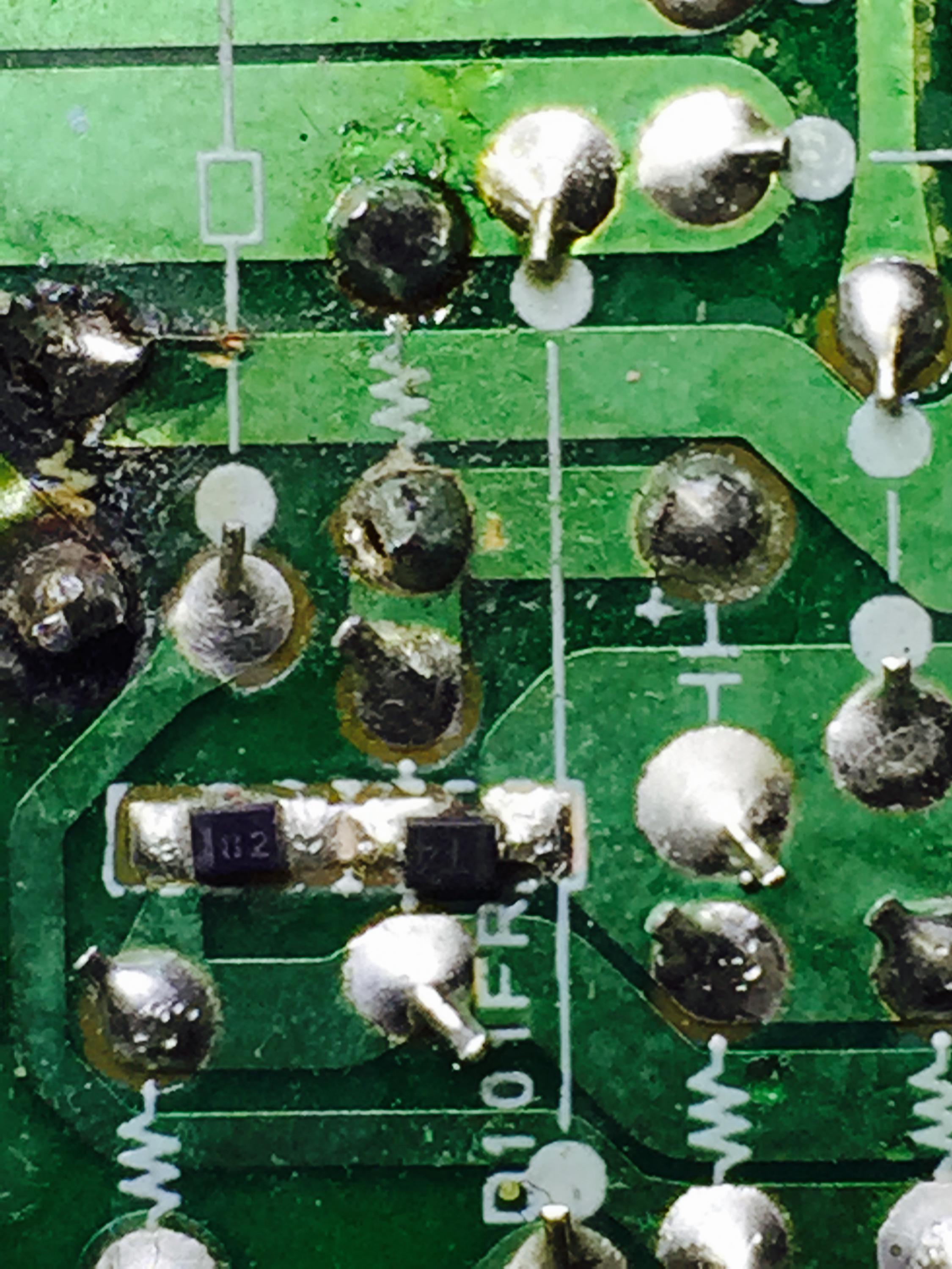 There's a 22ohm resistor that's melted and open, but it still has the bands.