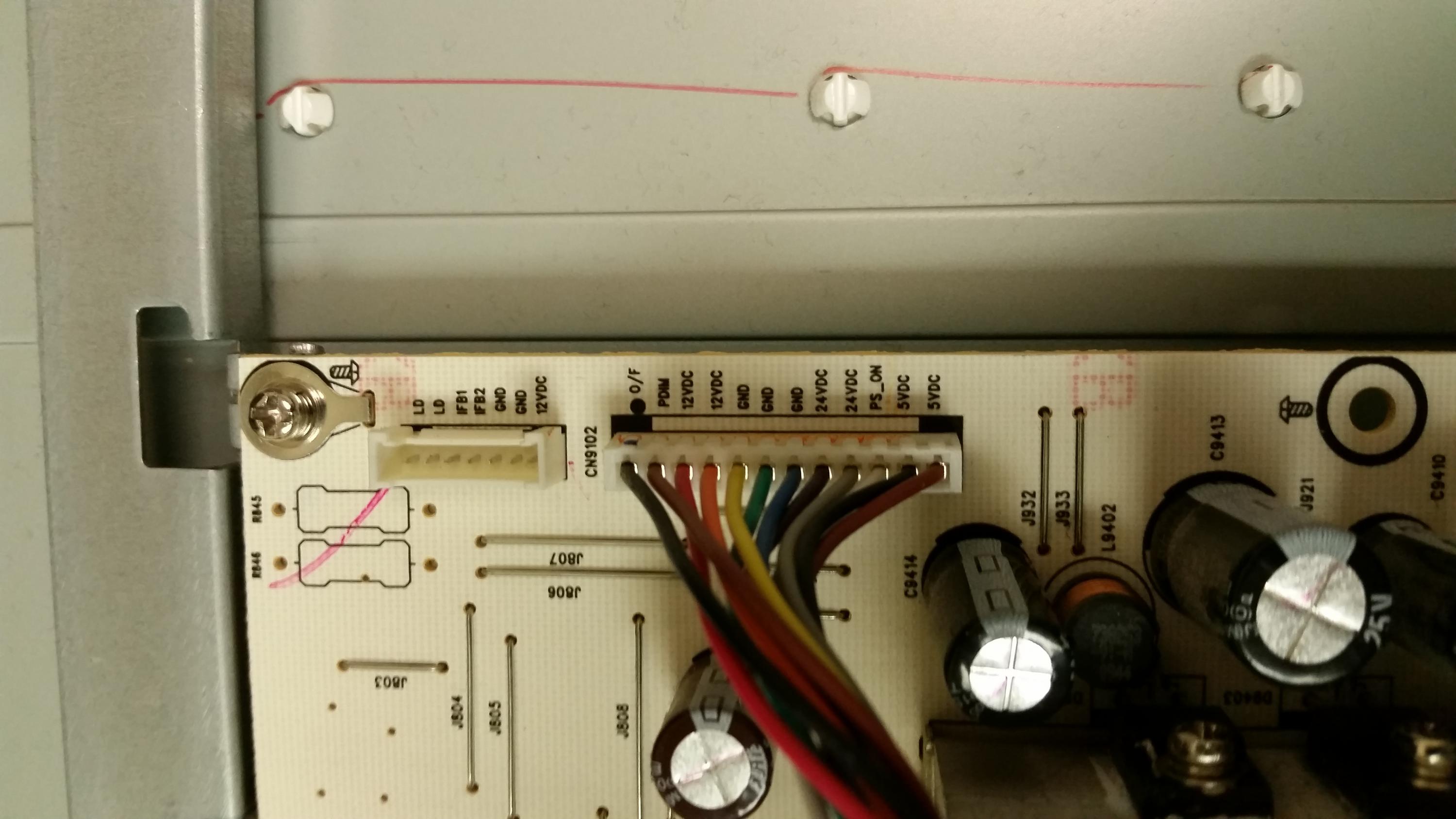 Using a DMM I got perfect voltages for all pins going to the main. So far it sounds like a bad main, but I wanted to test the PS before ruling it out. Checked all caps, all fuses, and diodes. After my check I found something a little odd on 2 diodes sitting next to eachother.