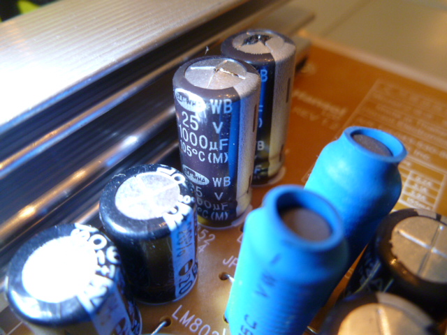 The 2 caps are Samwah WB 1000uF 25V 105C Size 12.5x20 MM
