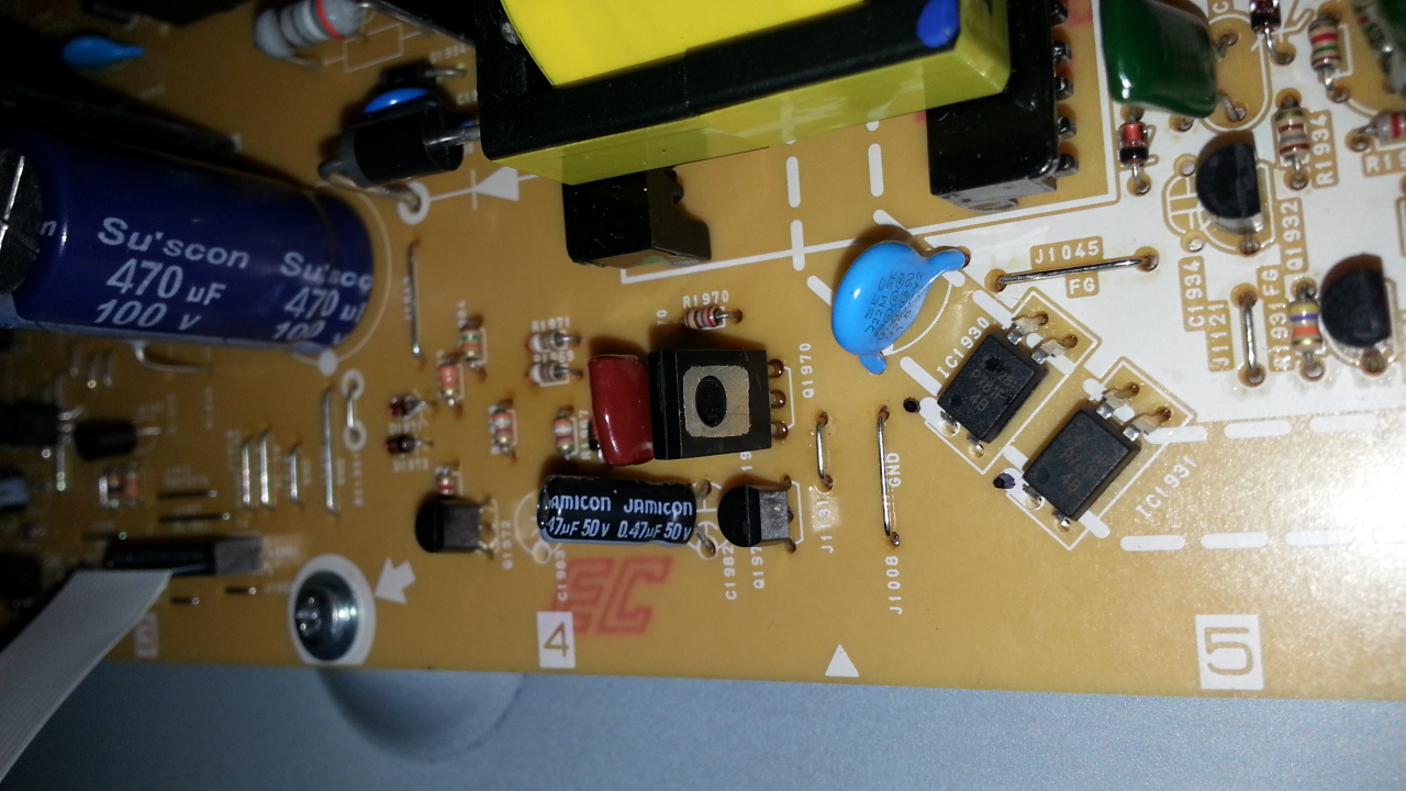 Replacing Q1970 (transistor C3200) fixed it. The transistor tested open E-C when finally removed from the circuit.