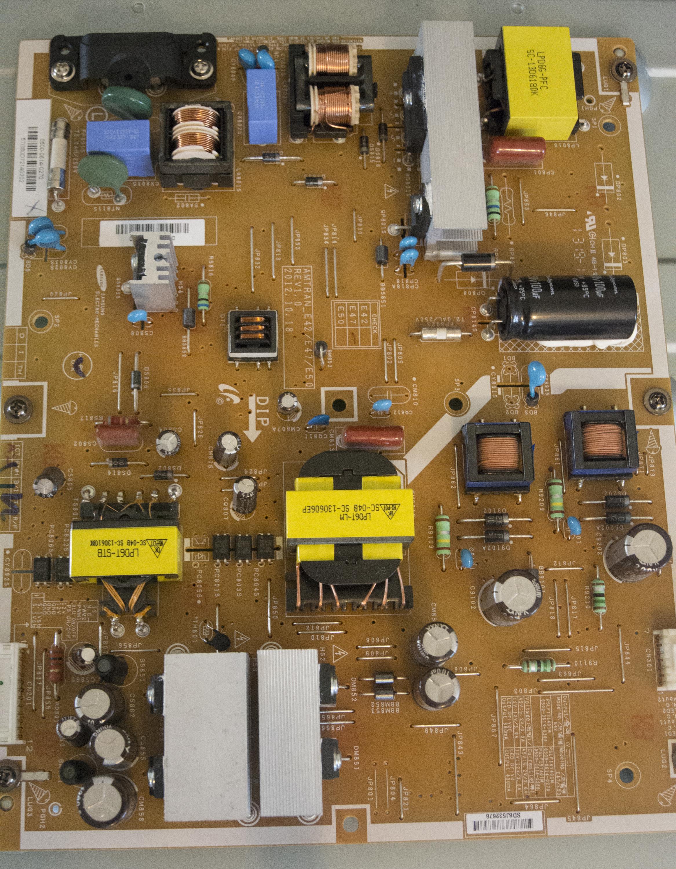 I've replaced the power supply board to no avail. Here's what it's doing...It sometimes will give a blue(standby?) light, but this light quickly fades to nothing(weird??!!). I've checked the pins on the connector...standby is at a bit over 5v, blu is 0(after the multimeter cycles down in numbers), and pwm1 and pwm2 are both at 0.96. The pson is also at 0 after cycling down. I haven't tried testing the main side yet, because I really don't know where to start. i've never tested diodes and bridges and whatever other thingys I keep hearing about, but I will give it a try. My multimeter doesn't give esr values, unfortunately, to start testing the caps. I didn't think caps would be the first priority?