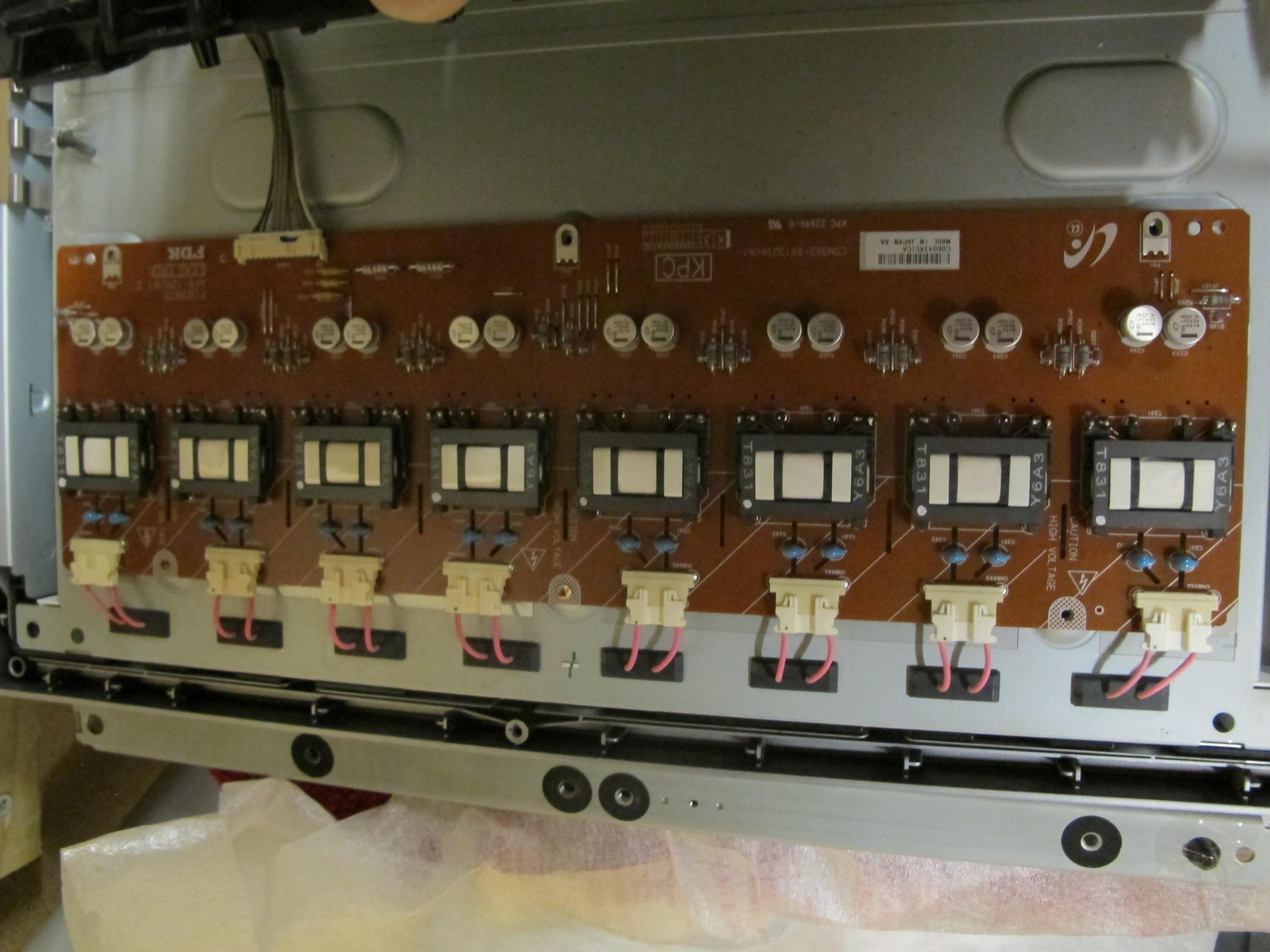 I'm beginning to wonder if it could be something to do with the T-CON Board 320WSC4LV1.1 but I'm really just guessing, it's been a long long time since I did any fault finding of this nature and I don't have the equipment to do any testing which you can't use a multimeter for. All I can really tell you is that the fuse on the T-CON board hasn't blown as I've done a continuity test on it. I did some quick readings on the SMC capacitors and one of them (I think its C378 is registering about 96 ohms which seemed a little odd to me as all the others are much higher.