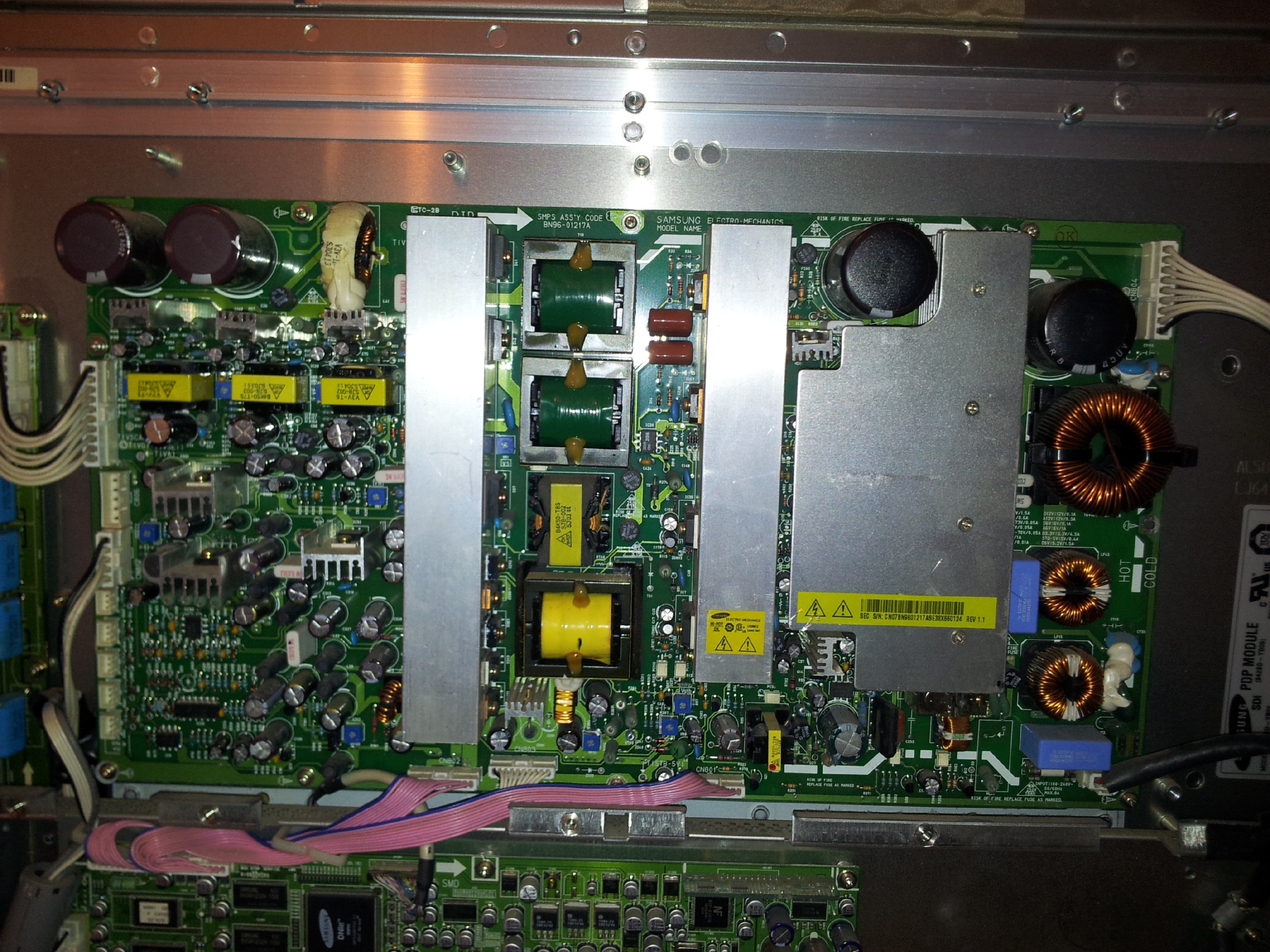Hi all. Picked up this Samsung for repairs recently. Initially suspected the Y Sus or buffers as I was told it had audio but no picture. On inspection there is a good picture and sound but after about 5 mins the picture breaks up and disappears leaving a black screen and just the audio. If I turn off for an hour or so and then back on again, the picture returns as normal for around 5 mins again.