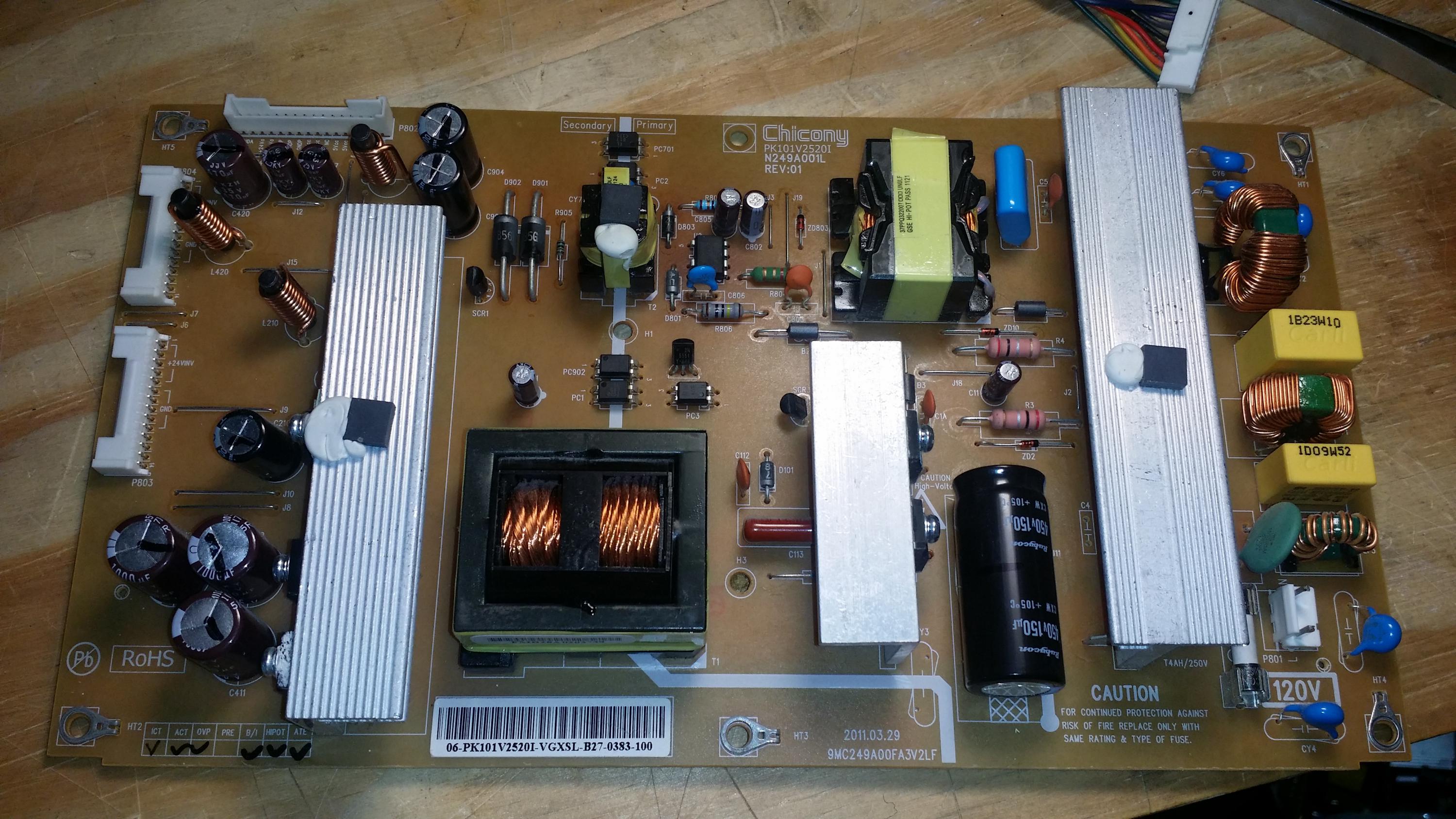 when the TV is plugged in the power button will illuminate but nothing else.. I checked the main filter cap and its holding at 169V but spikes to 270v for a sec when i press the power button. I have checked every diode and FET but i cant seem to find anything wrong with this thing.. I don't know where to look