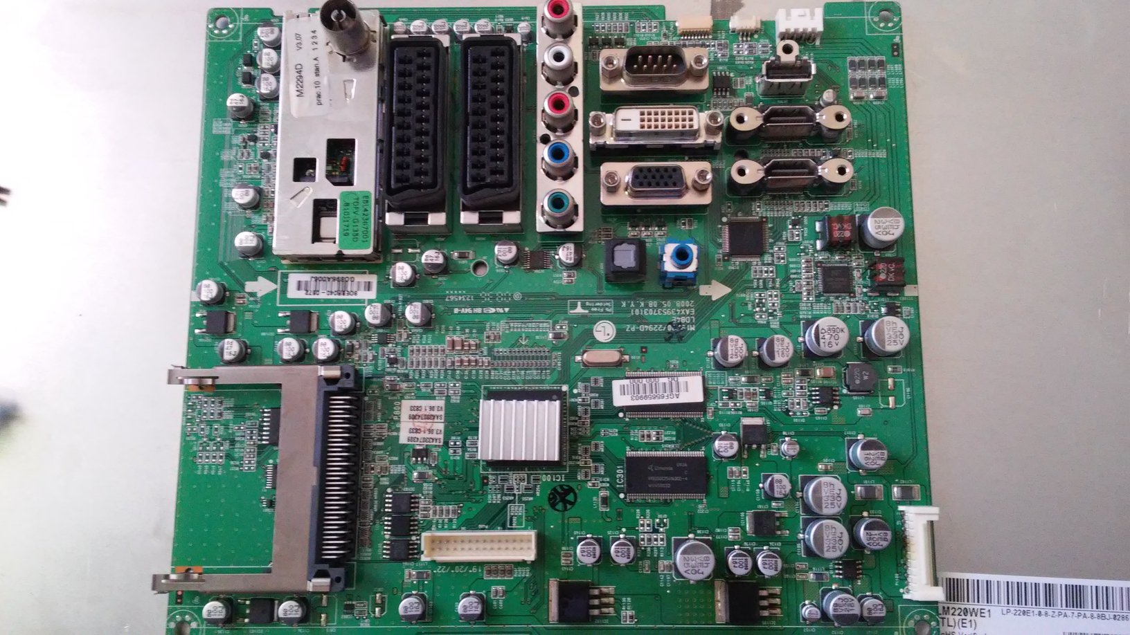 I Have a LG Flatron M2294D with a panel LM220WE1-TLE1 having some isues with the screen there are very thin colored vertical lines and some black and white horizontal at the top.I opened the tv and i saw some bad caps at the power supply i changed them and the problem solved some days.For days im surfing the net trying to find a solution but nothing.A lot o people claim that may be the tcon board.