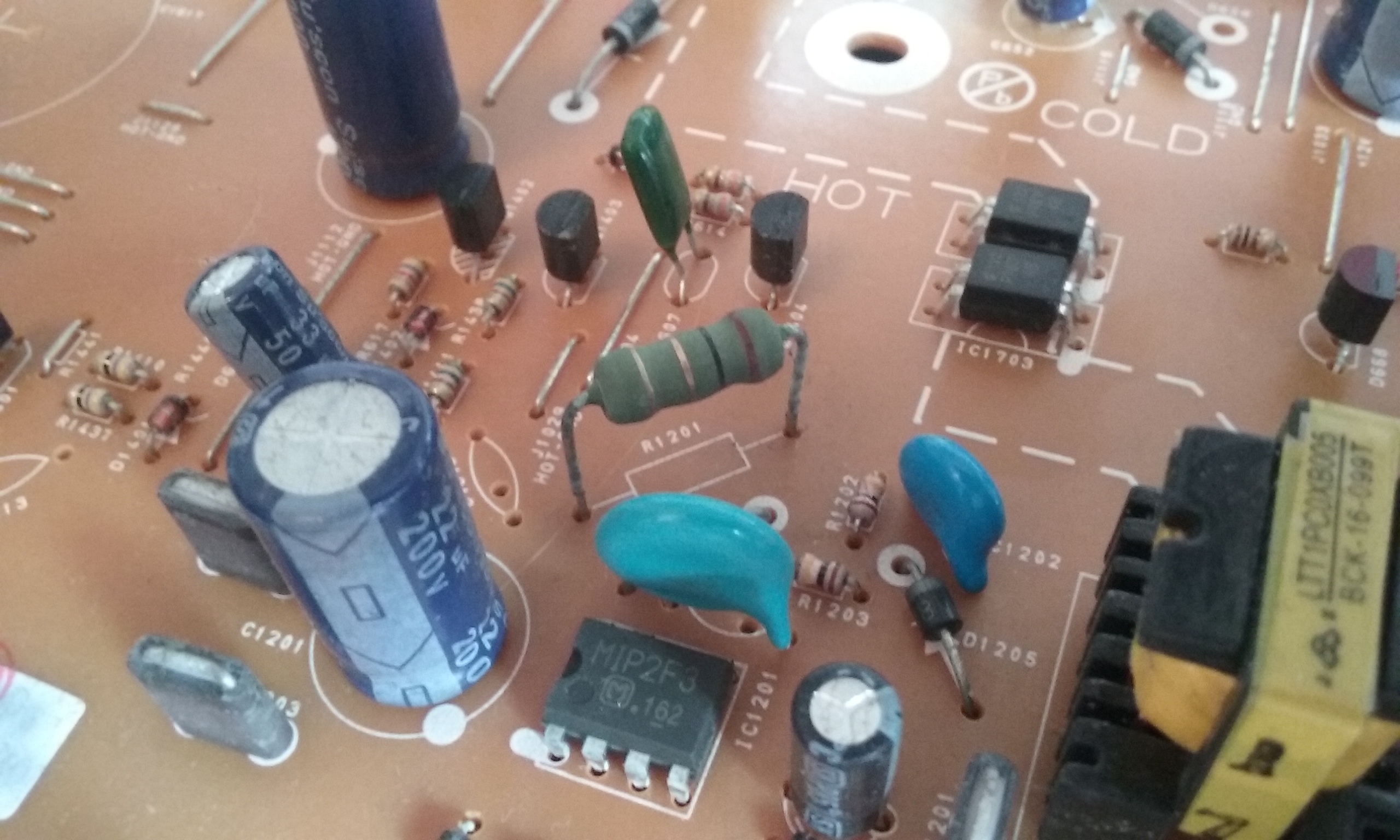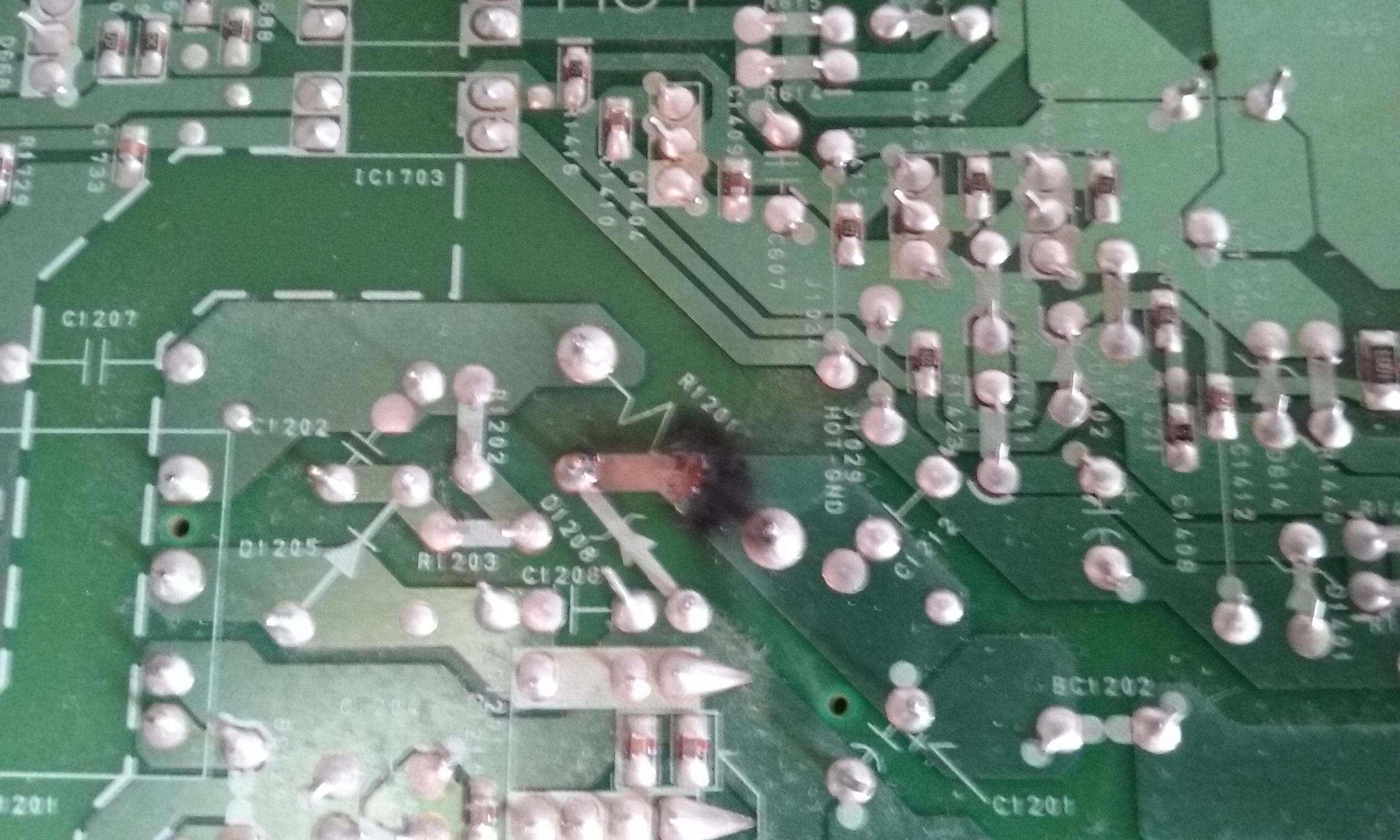 Just picked up a Funai LC401EM2F that, due to a lightning strike, won't turn on. I'd like to start off replacing the resistor that apparently is burnt (see pics) but I've never identified a resistor before. Online resistor calculators tell me it's a 1 OHM resistor 5%. Is this right?