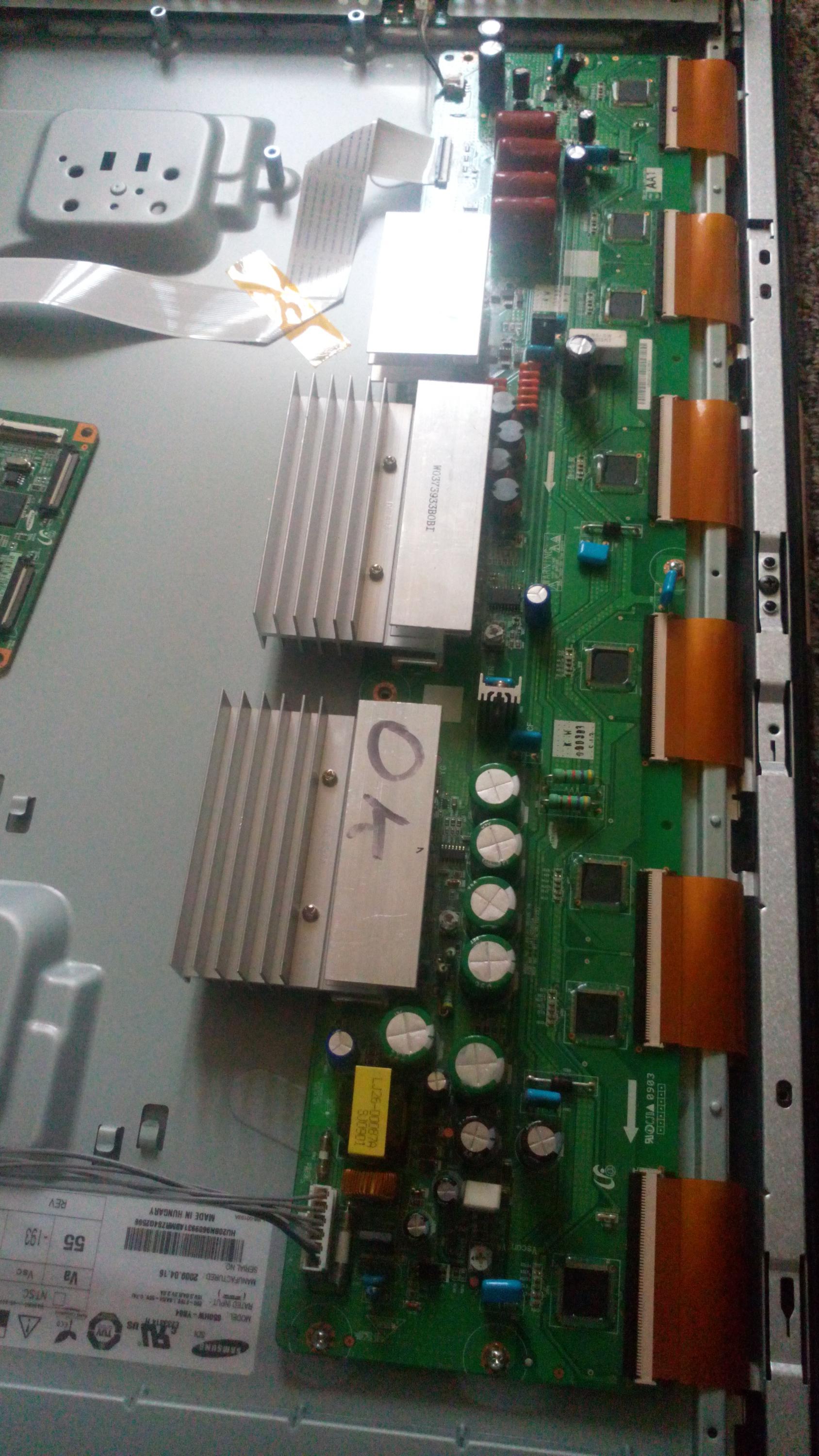 Need board numbers for Y Sus and buffer? BN44-00273B is the power board and yours is a BN44-00274 as I can see in the photo. test Y board for shorts across Vs to ground and check buffer ICs for shorts if you are unsure how this is done look on you tube, Tom has a how to test buffers demo on there and this will show you. Flocko I have just looked again and see your Y Sus is a Y+buffer combo these are hard to find and cost loads. you my wish to repair your board our get some one to repair it for you, I still need the number?to help you moreComment