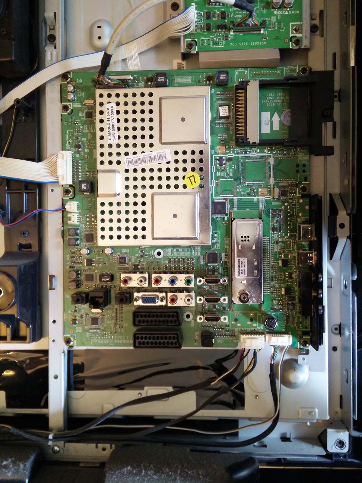 Looking at a Samsung 55" LCD TV LE55A956D1M with no picture, backlight is on and seems quite bright but no picture. Tried a factory reset with the remote and makes no difference. Makes the normal startup and shutdown chime. I was thinking it was a faulty main board and noticed its got a dimming board above the mainboard which I've never seen before. Looks like the main board is almost impossible to find (BN41-01063A) but the dimming board if freely available. Anyone any experience with this model of TV and could it be a faulty dimming board ? See attached photos.