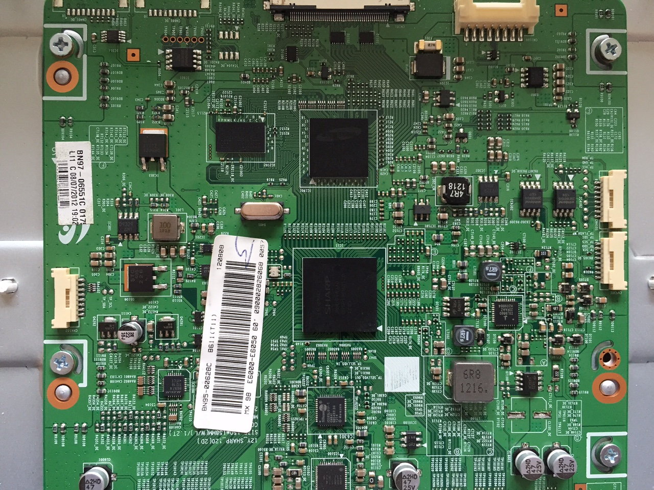 Story goes there was some lightning or brownout. Anyway, the PSU works fine. So I am down over the mainboard BN97- 06546A on the Samsung IC as it is getting hot. The same IC also does the LVDS. Haven't had the chance to run my oscilloscope on the LVDS yet to check if there is any signal coming out or not. The T-Con board is tucked away underneath more plastic. I can't access it through the service panel on the back. Bummer.