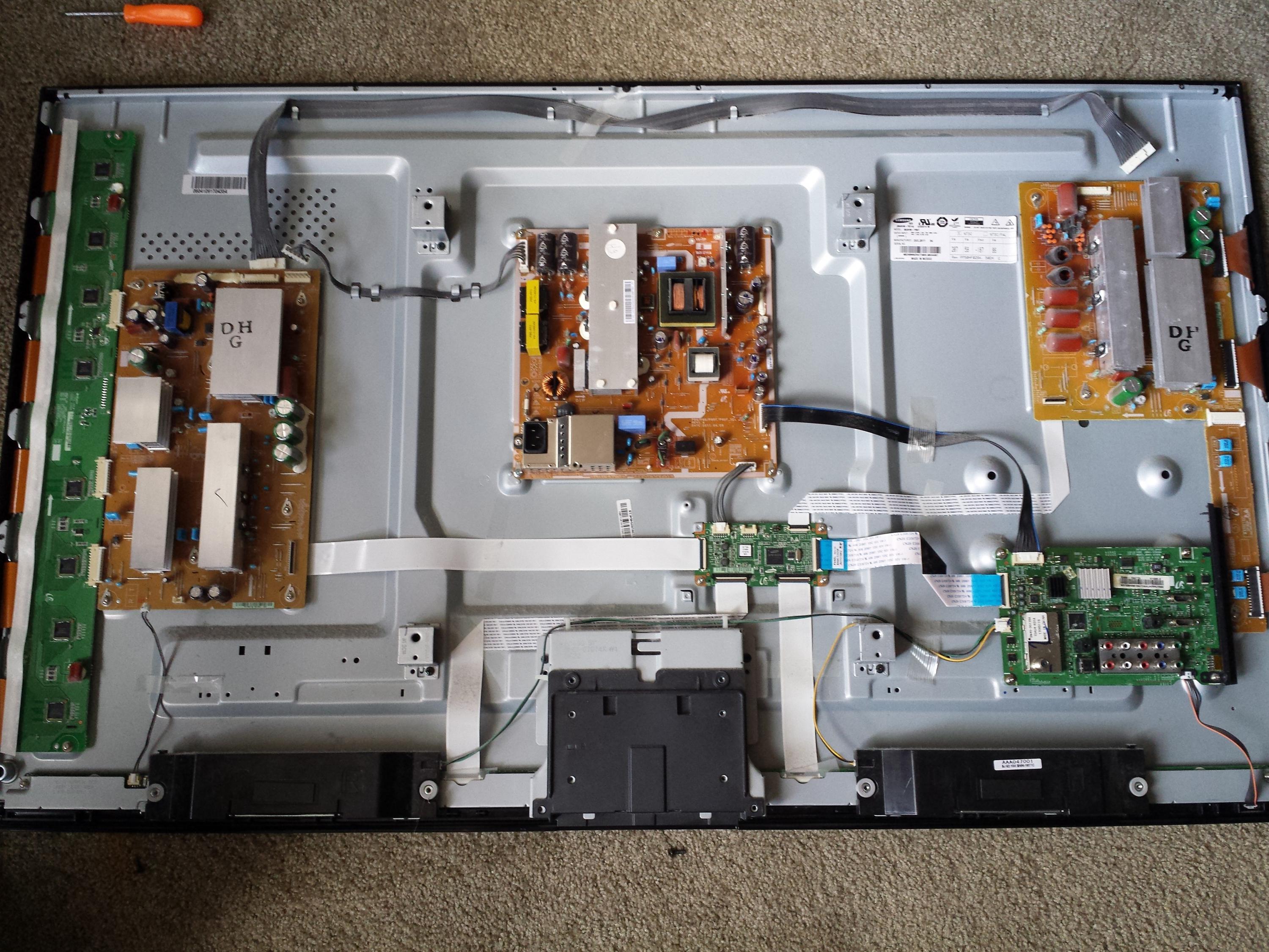 Hello, said tv was working fine this morning, came home this evening to find the tv will not come on. The only thing i can go by is the red LED is blinking rapidly. I can only describe the blinking would be like morse code or something, rapid with no distinct pattern. I did take the back cover off, i didnt see any bad capacitors or anything like that however i think there is a burnt spot on the board, i dont know if its burnt or not. I can upload a pic of the board if it helps!