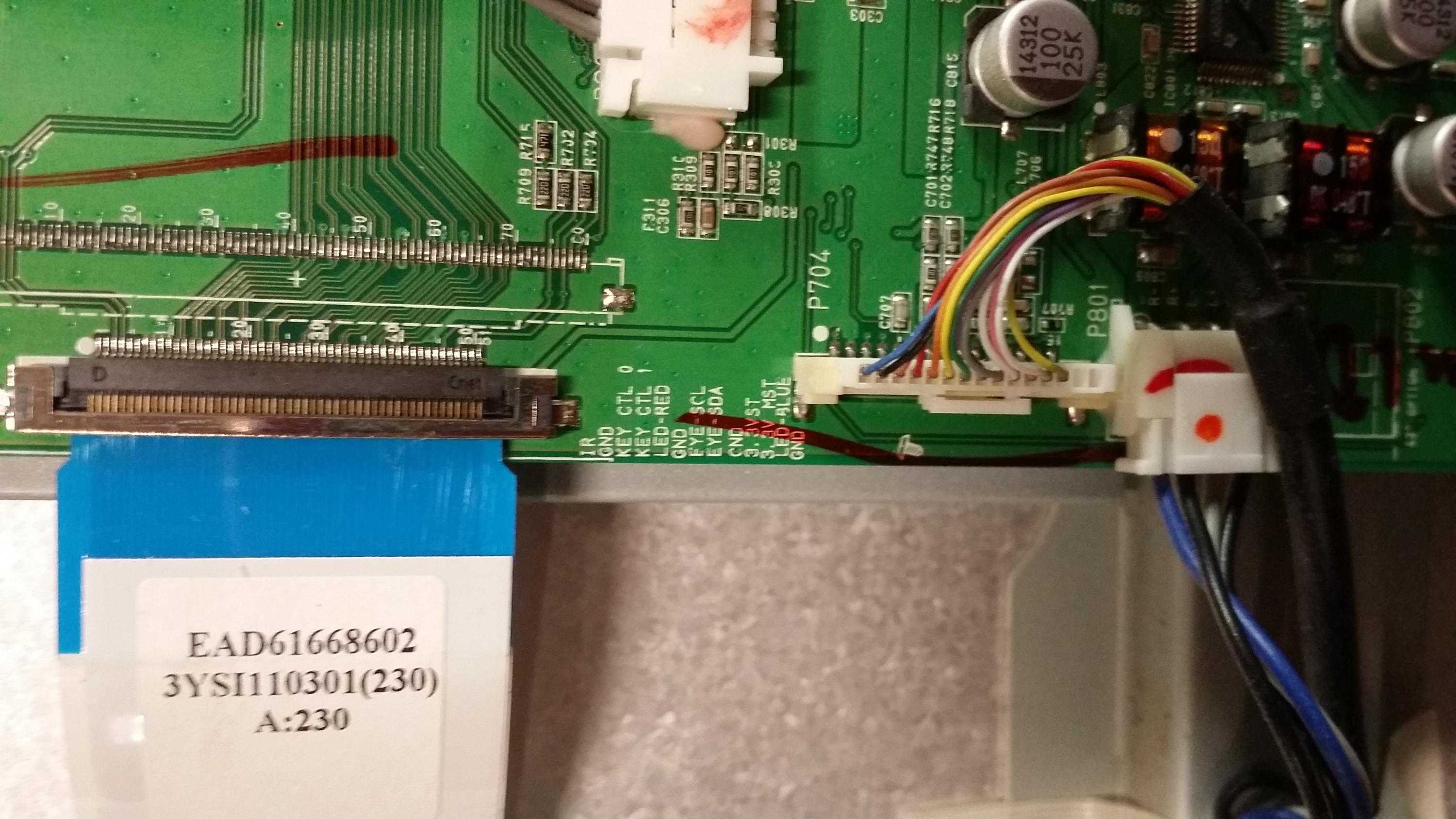 ok it seems the picture goes on and off after it warms up alittle picture will come and go but sound will stay on, im not to sure what the little light on the tcon board is for? but t blinks then it will stay on then stay off its a little green led light. its in this picture, then I noticed the middle heatsink on the ymain is pretty warm not too warm where you cant hold your hand on it, just warm. but the tv is weird like the picture will go out stay out for a min then come back for ten then go out and such, I was wondering what that little green light is for on the tcon or digital control boardAttached Filesif you find these attachements useful please consider making a small donation to the site