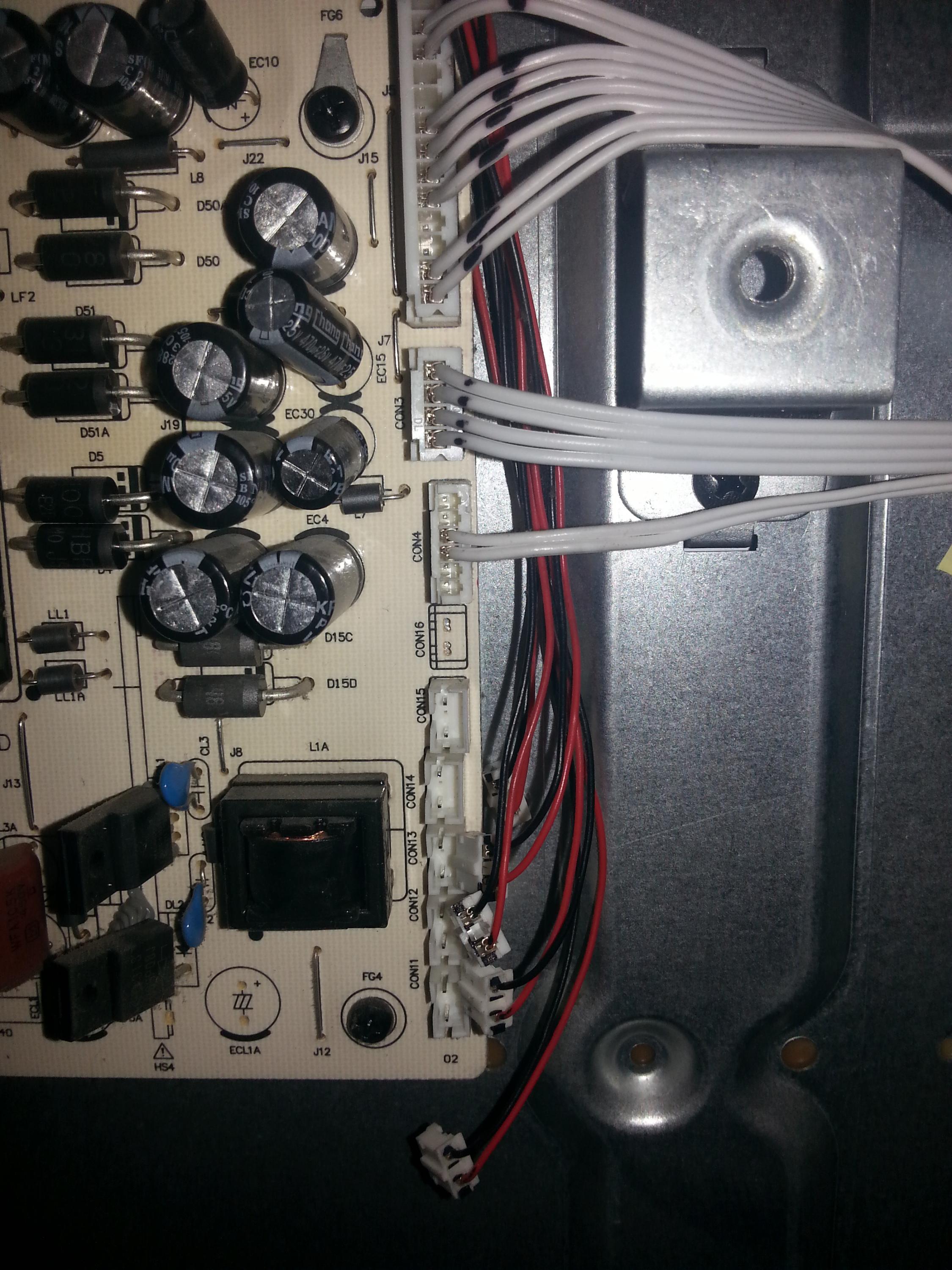 I am not sure where to go from here, as I have nearly no voltage ( 300mv) at the back-light header on the power board, and I am not sure if it should be higher. There are a total of 5 connectors for the back lights on the power supply.