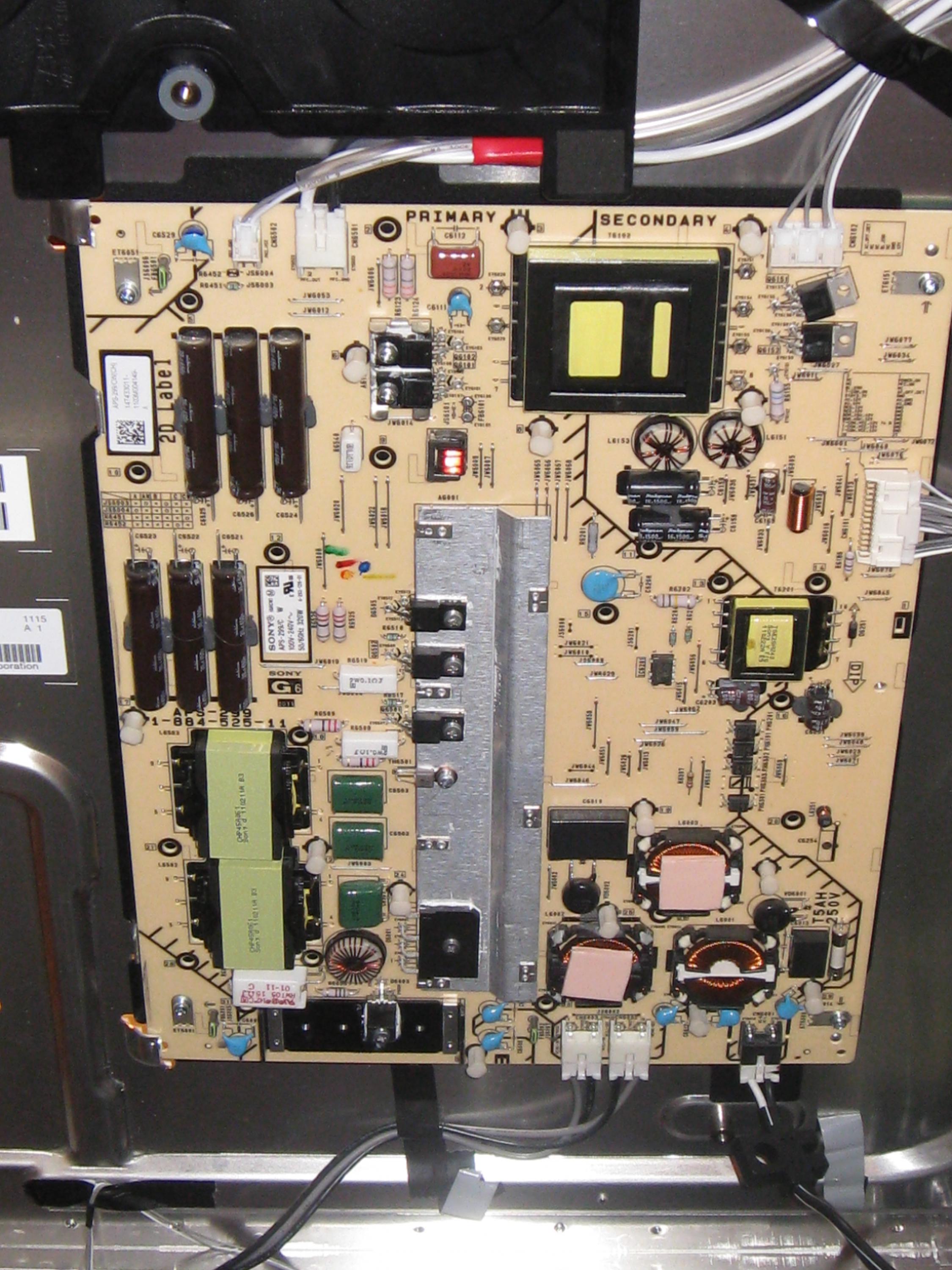 I pulled out the bl_err wire from the connector you have circled, the one on the smaller power supply and taped it to the back of the tv metal frame