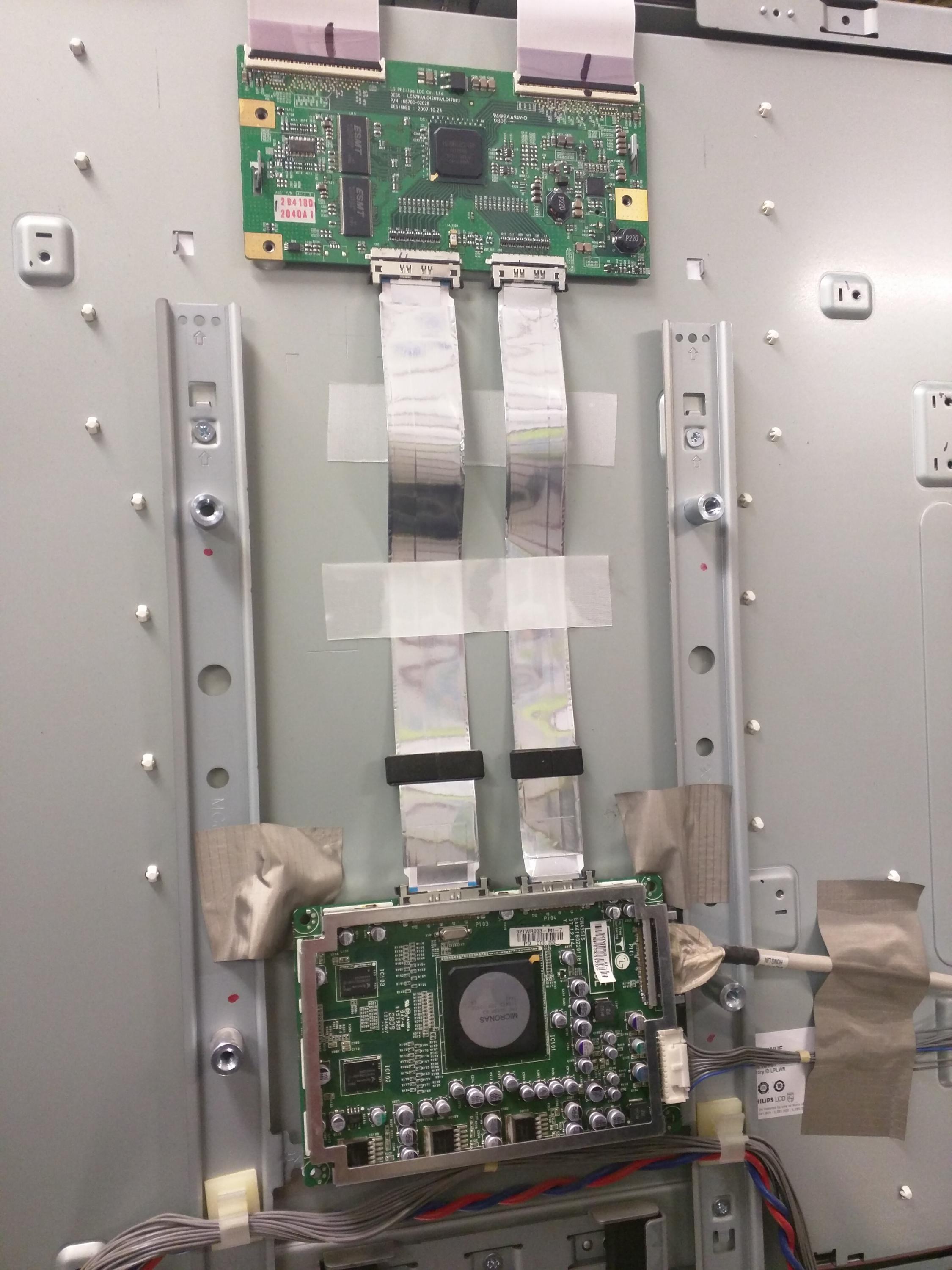 I have a Sharp LC-46D85UN TV that has had a main board issue. Since this model is from 2009, I am not able to find an exact replacement of the main board. Instead, I decided to see if I can future proof this tv by getting a Universal Main Board (T53U21.2) from China to work with the Sharp TCON (CPWBX4291TPZA) and panel. The universal main board supports a 8 bit dual channel LVDS interface whereas the TCON requires a 10 bit dual channel LVDS input. I have modded the LVDS connector to match...