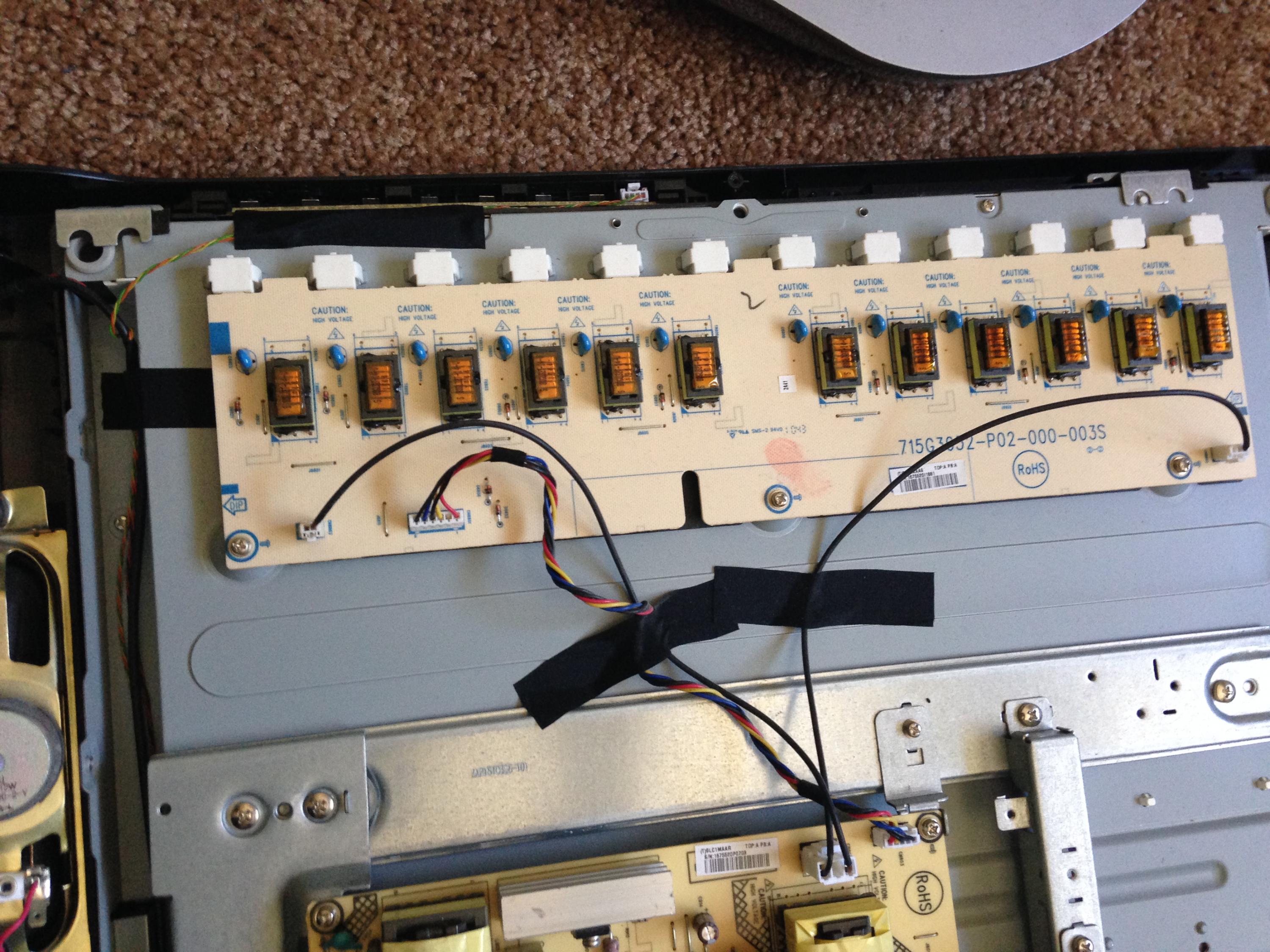 by SCCronauer25I am trying to fix my Dynex tv. The PSB is new and so is the Control Board, but when I turn it on, I get "please wait..." on screen, then it quickly goes black. I have the back of it off and checking voltages shows 5v standby and 2.5v supply comes on going away/into PSB/Control Board, 24v is present on PSB (getting .4v on most, if not all, backlight lines, 5v to backlight is there also), the control board's heatsink staying hot to the touch, plus the 2.5v going away/into the PSB/Control Board, gives me the impression it is on. What else should I check for?