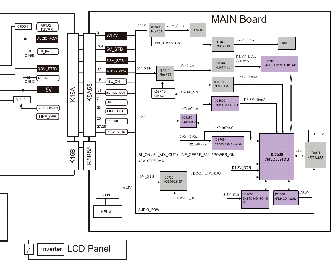 Sanyo TV with MSD3391DS SoC and circuit diagrams: