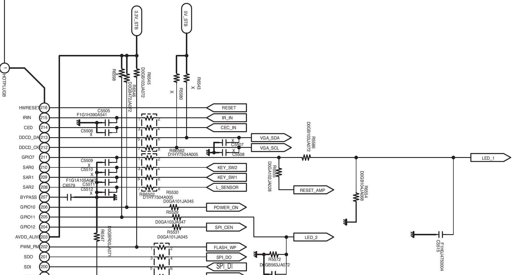 FYI, the Sanyo DP32642 TV uses the same SoC. Although it is a different TV, its service manual has troubleshooting information and circuit diagrams that are pertinent to your Apex.