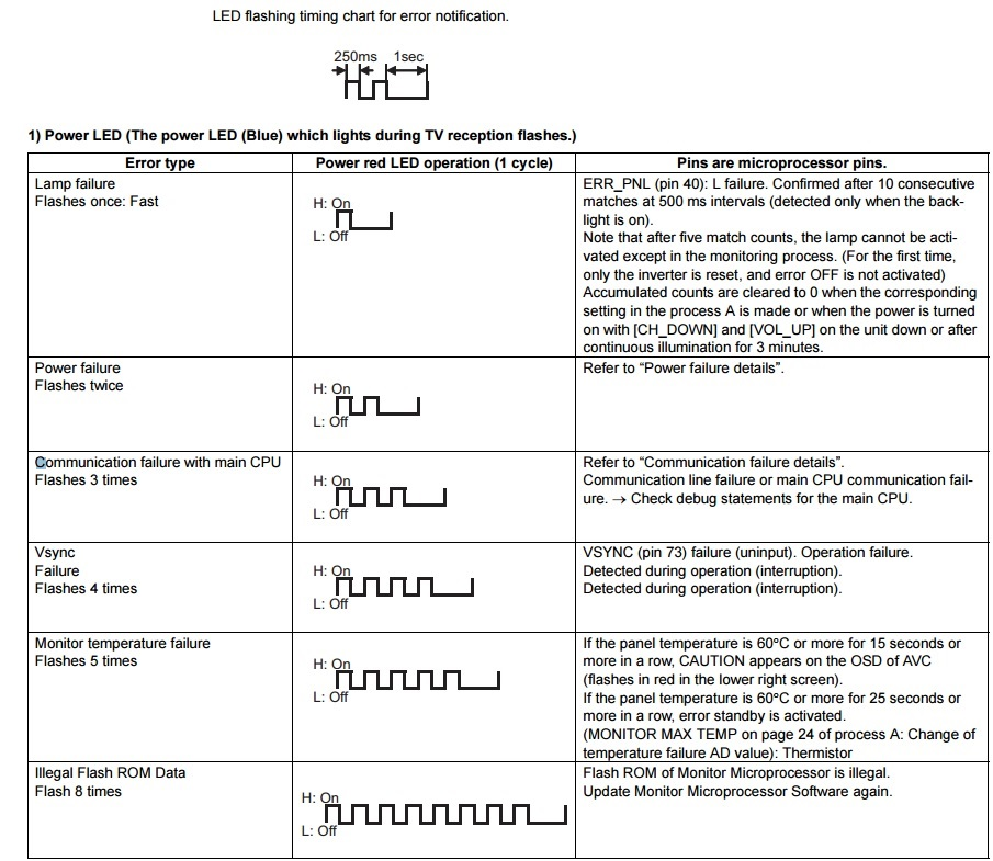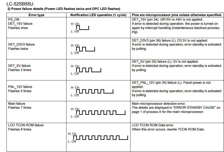 Here are excerpts from the Sharp Service manual concerning the LED/OPC codes. Also I'll take full pics later tonight of the main board and post tomorrow.