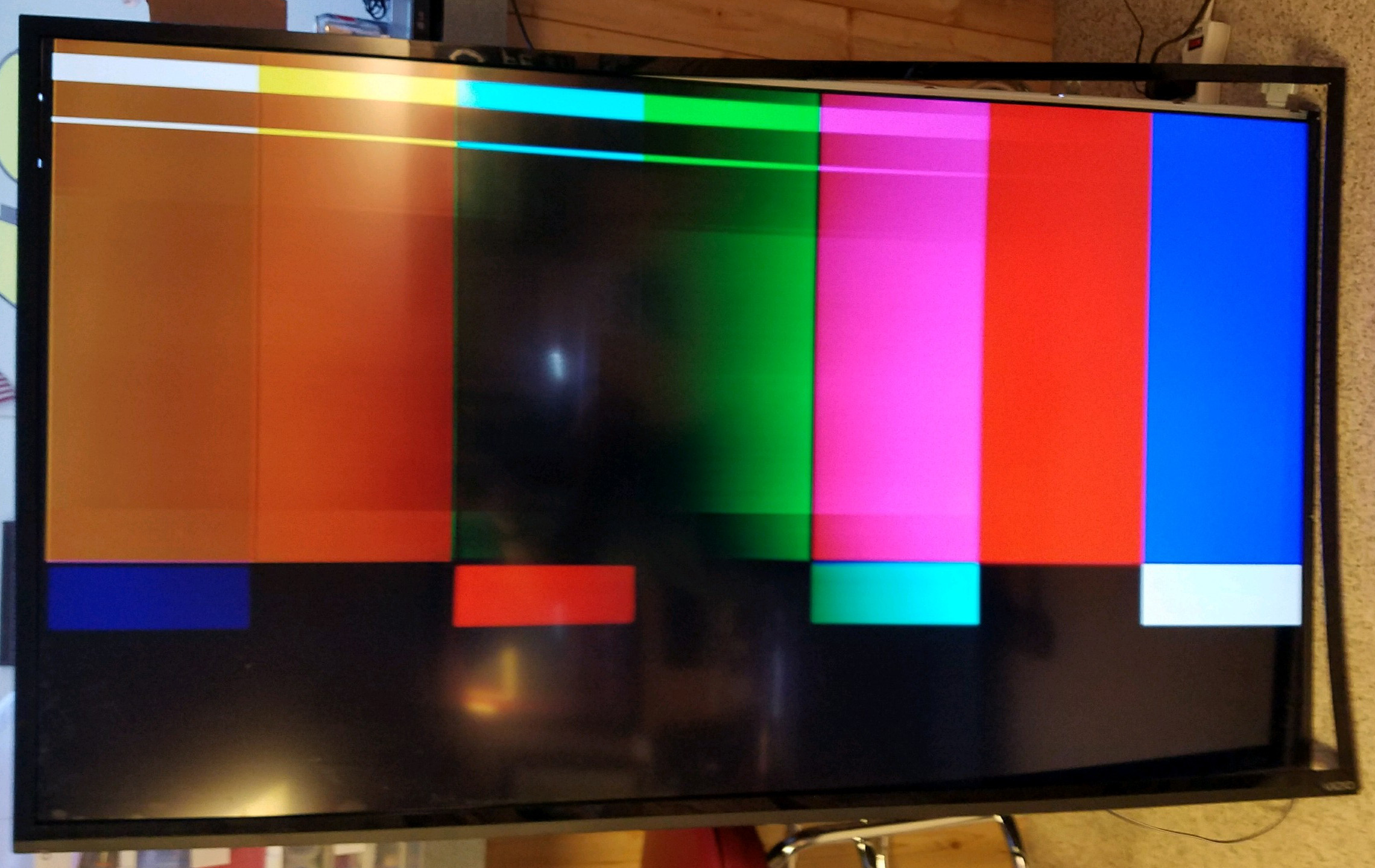 Weird lines I got in the beginning after I plugged everything back in. Those vertical lines were visible over large portions of the TV. They did seem to go away after a day..
