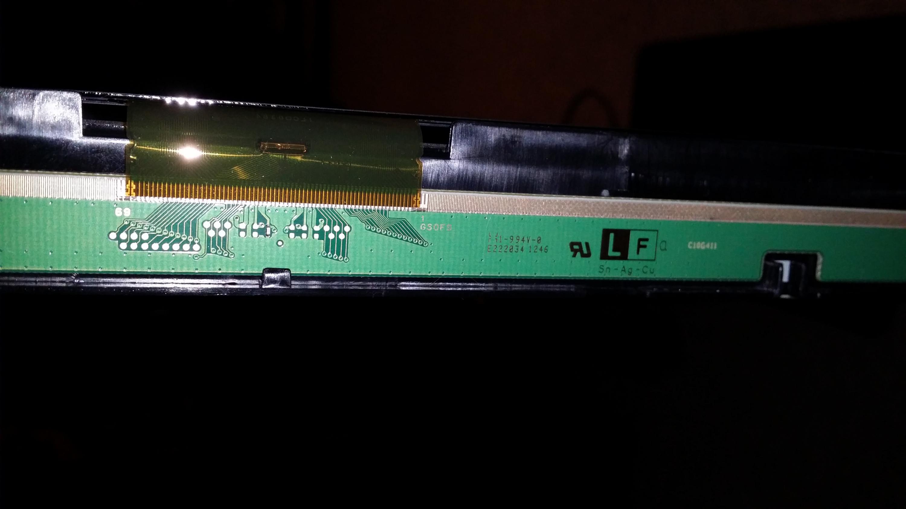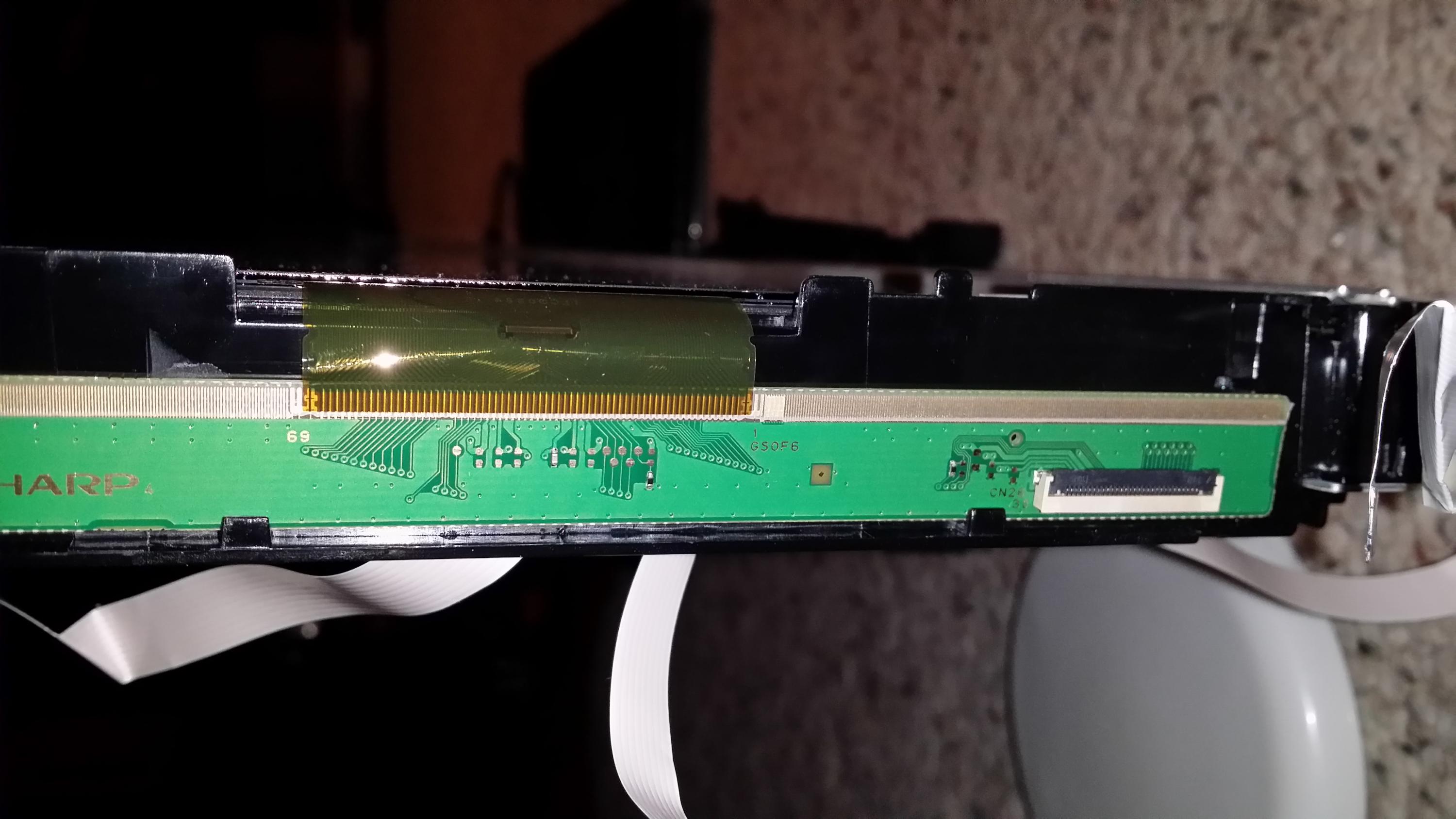 Each of the 5 tab cable mentioned above are either soldered or bonded on one end at the edge board and bonded at the side of the panel at the other end. On the sharp, my tab cables were soldered on the edge boards. From your pictures, yours appear to be bonded.