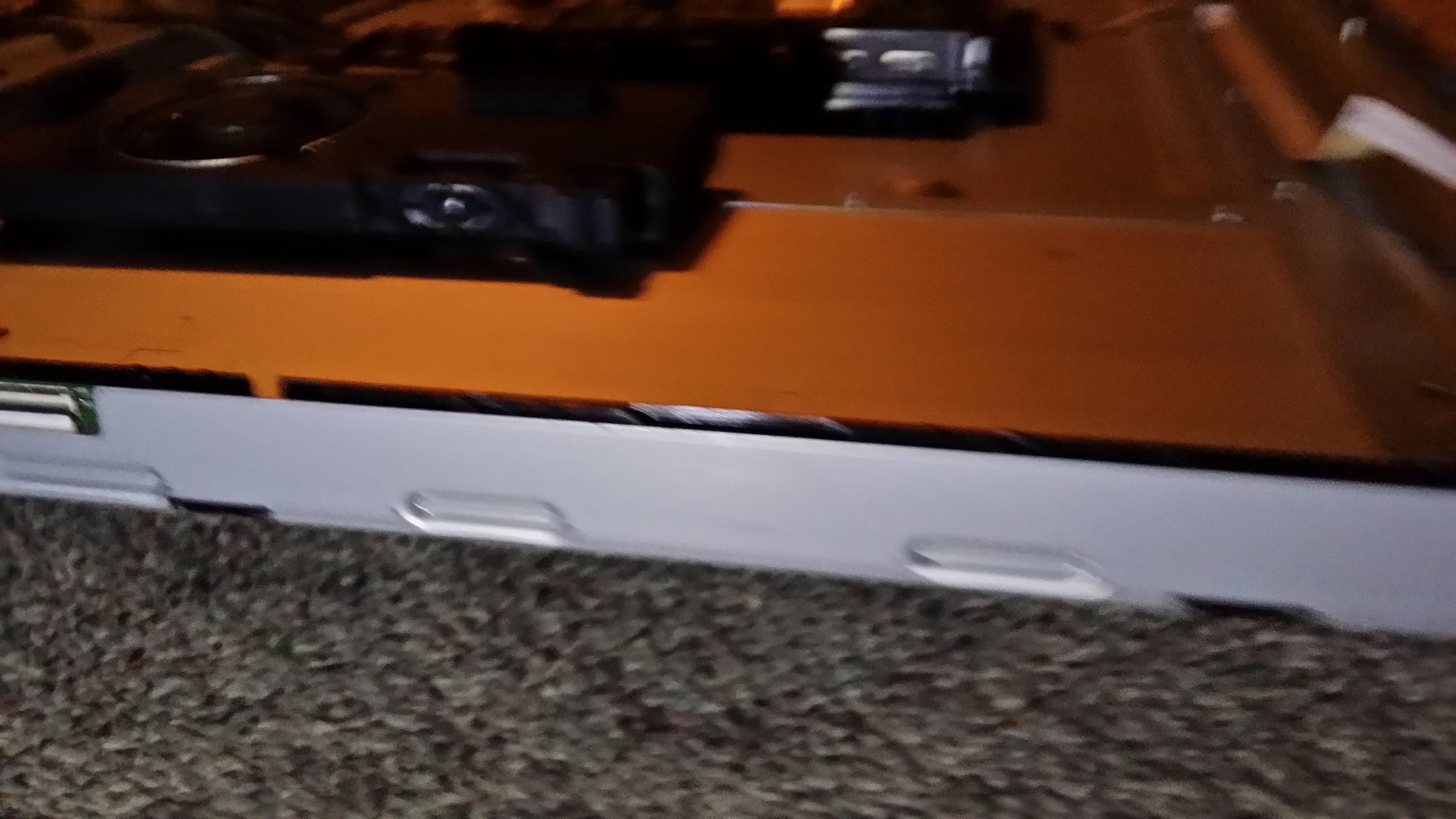 with these Vizio model TVs it is not necessary to remove the metal frame on the bottom. Just the side. also it is not necessary to remove the plastic bezel you can easily pull it away enough to get The defective tabs off the scree. When you remove the defective tab drivers directly off the screen the white cable on the bottom that transfers the bottom board connection to the sideboard that you're removing it is not necessary to remove that white cable you can leave it connected to the bottom board.
