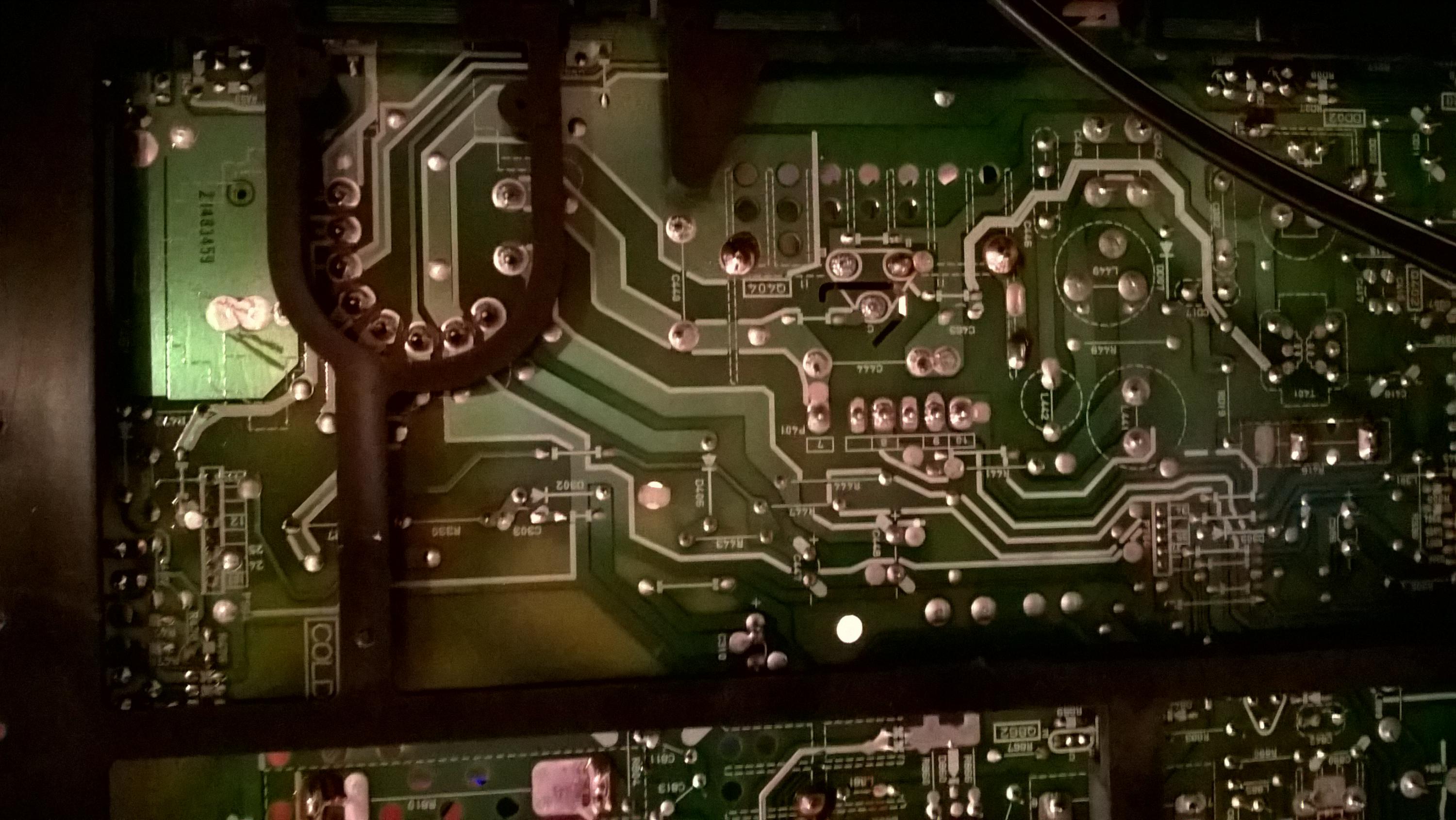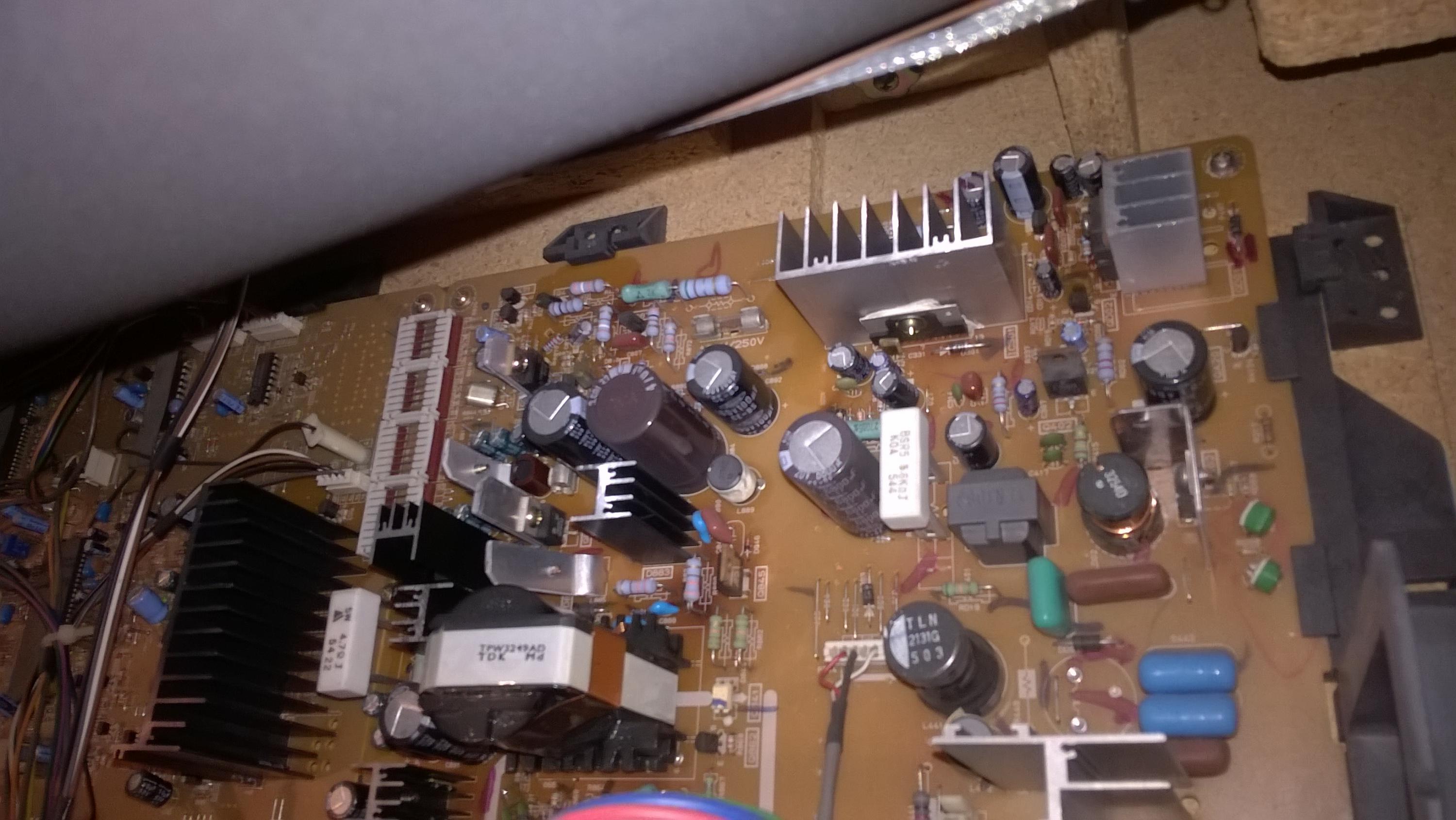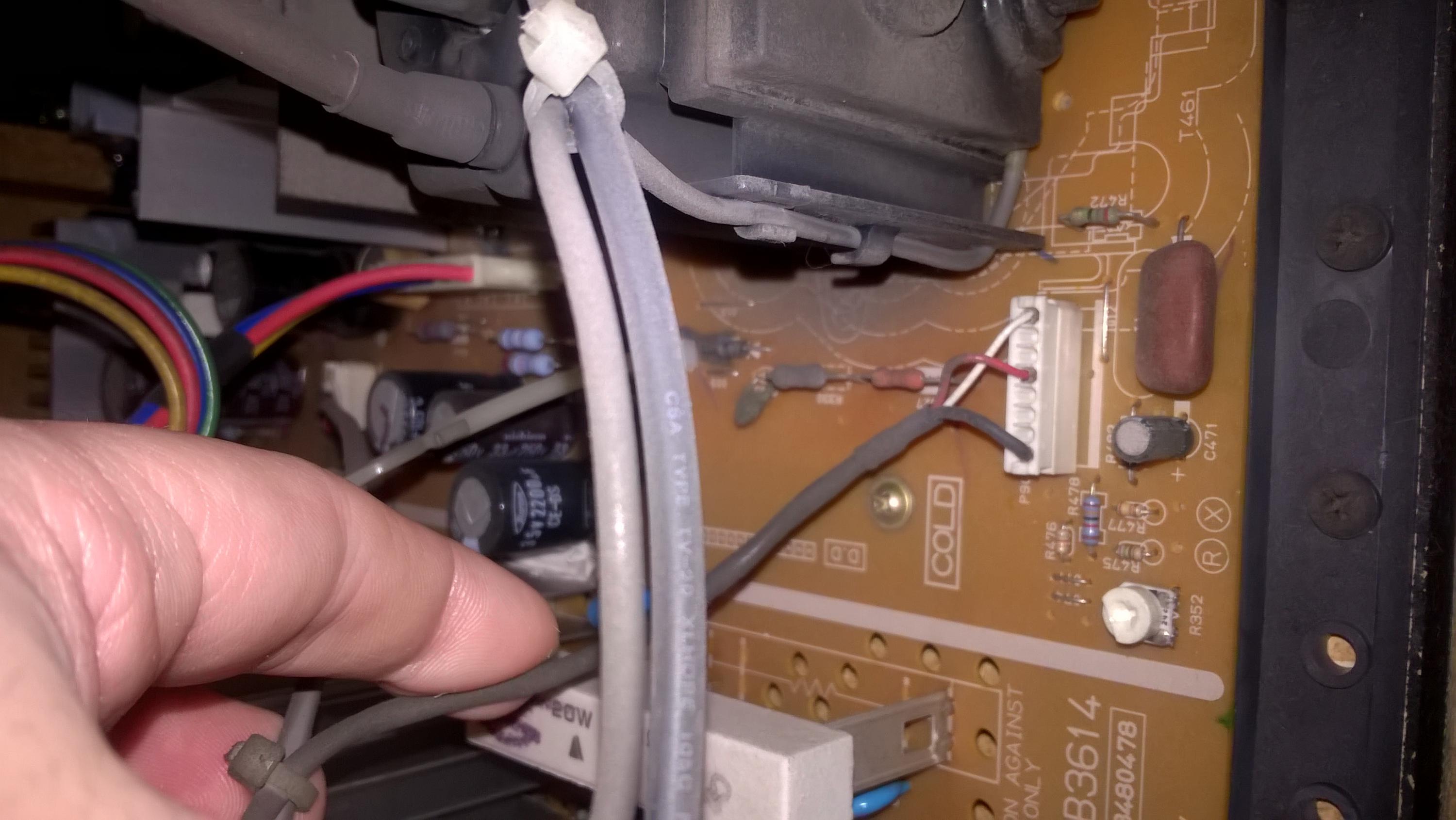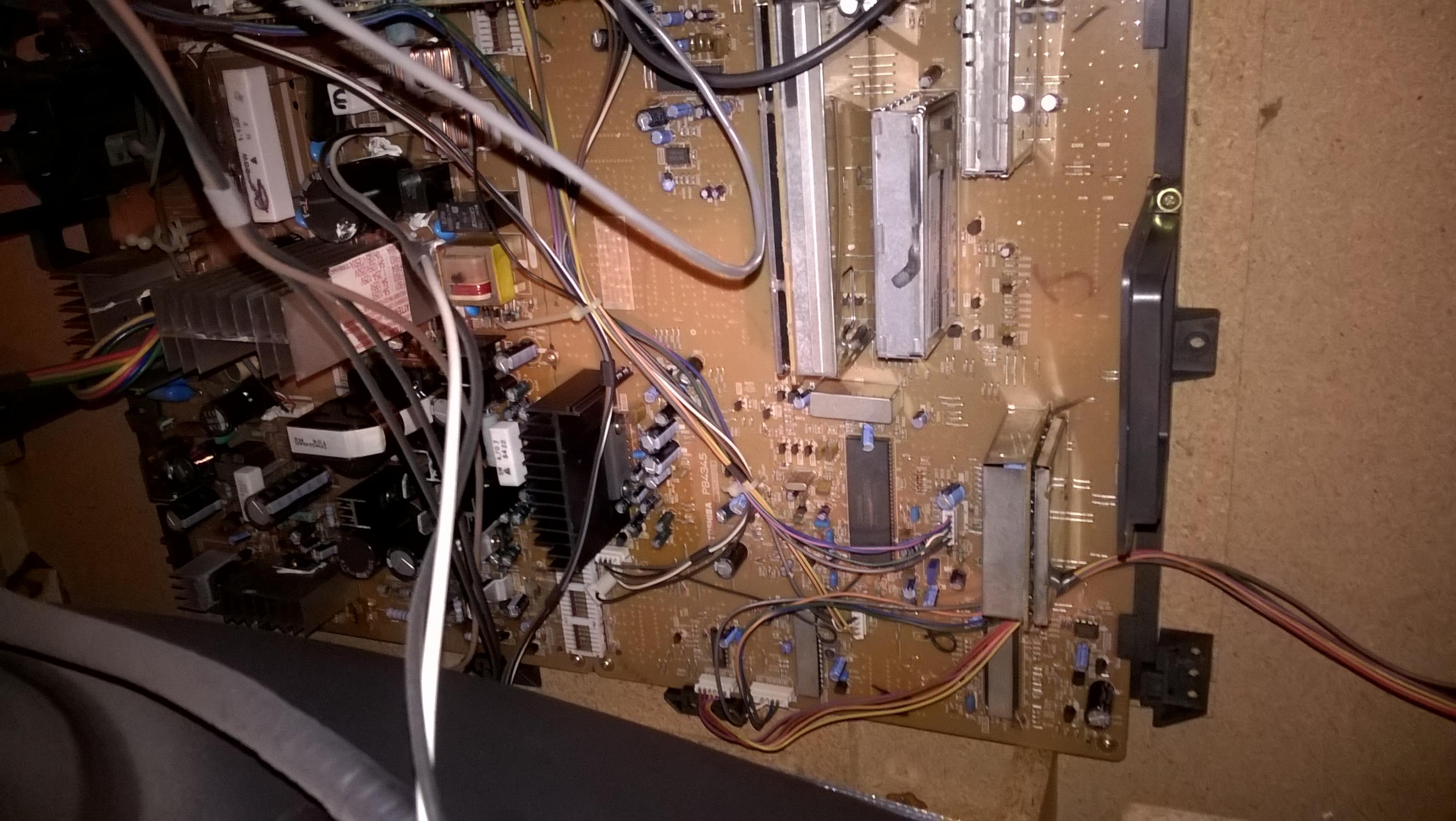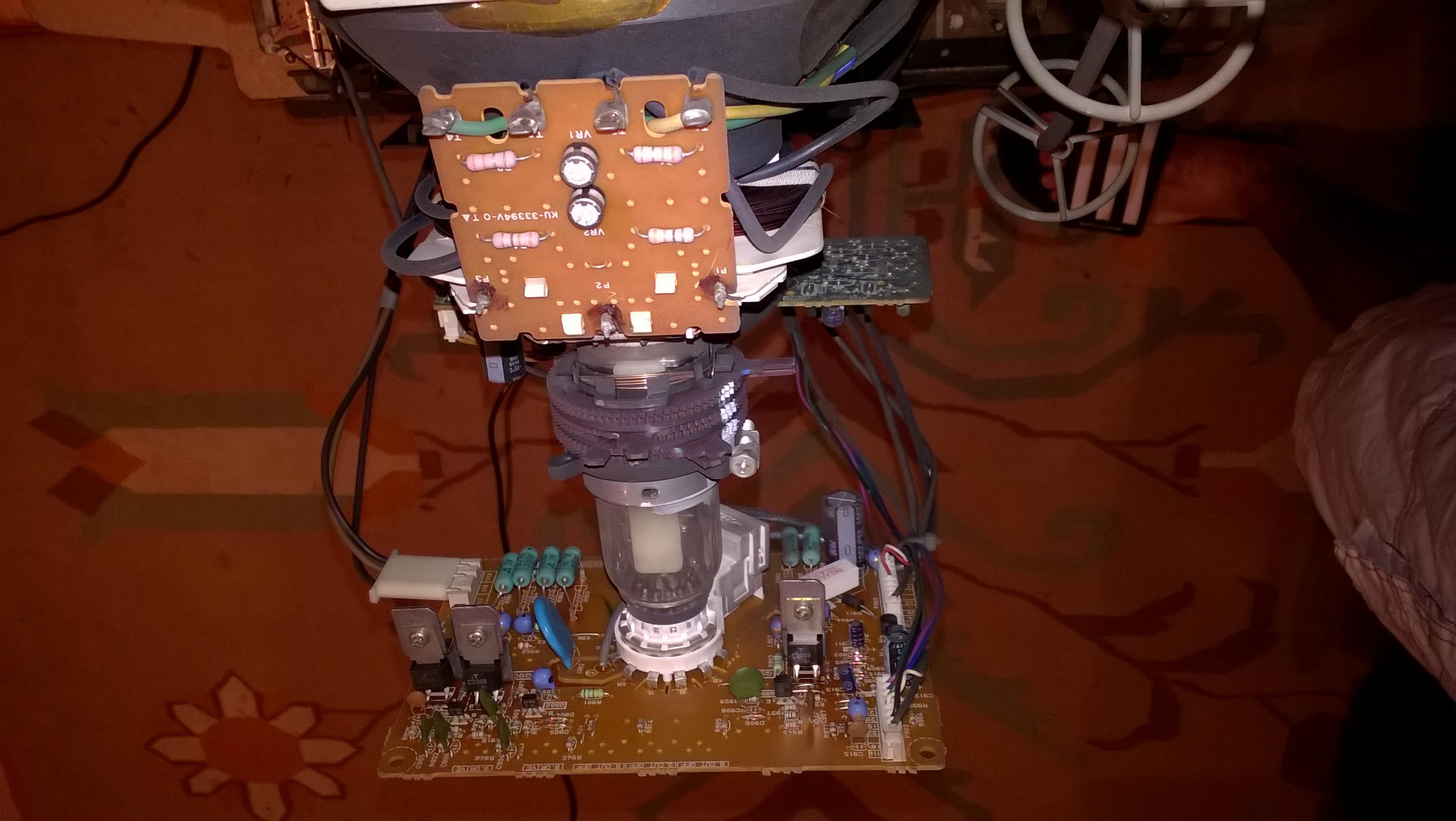 This is a late 90's 35" Toshiba crt, when its first turned on there is horrible pin cushion effects on the screen (see pics of menu, though it affects everything obviously). I assume there is a cap somewhere that has to warm up. What area is this cap likely located? board behind the electron gun? (I know nothing about crt's so just guessing)