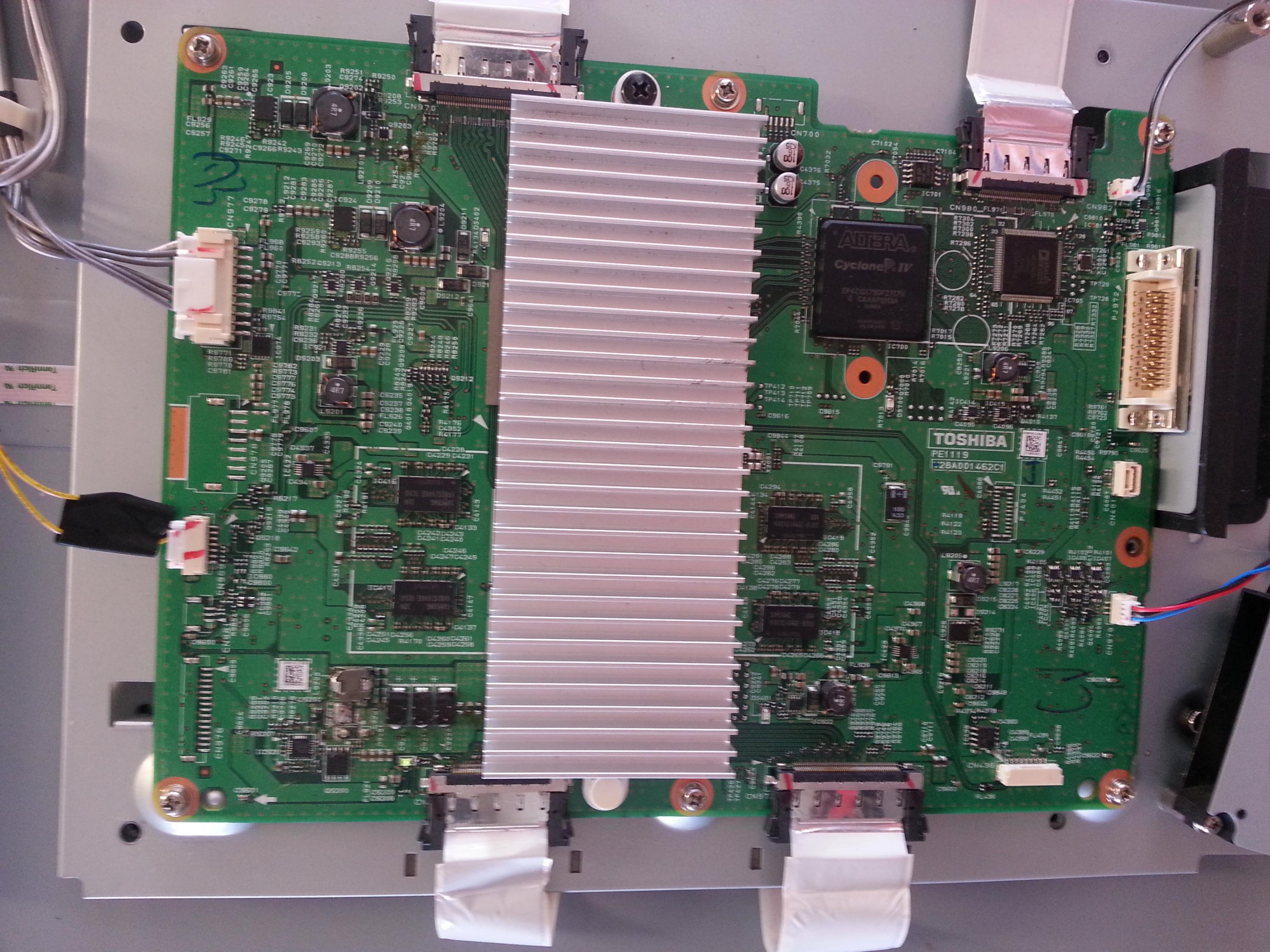 Well, the upscale board was the issue. As soon as the panel energized, I saw cracks that were not visible before. I examined the panel with a light and there were no visible cracks. This set had signs it was hit from the rear..I am now the owner of a full set of good boards for a 4K Toshiba. Yay me!Comment